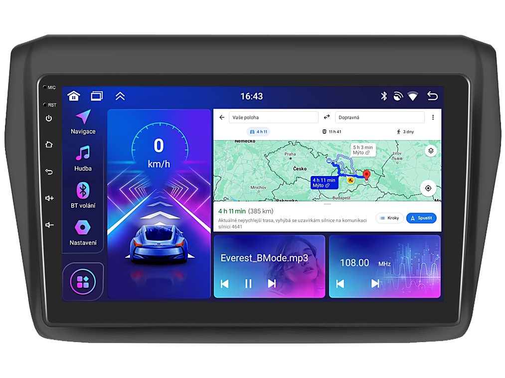 Zažijte každý okamžik ve vašem Suzuki Swift III (Gen 5) s neuvěřitelným zvukem díky 2DIN autorádiu Bmode BEV67. Na první pohled upoutá moderní technologie CarPlay a AndroidAuto, které umožňují bezproblémové zrcadlení a ovládání telefonu na displeji autorádia. Jeho 9 palcová dotyková obrazovka zachycuje každý detail v HD rozlišení, což potěší spolucestující při cestování. Vysoký výkon zajistí čtyřjádrový procesor s podporou 4 GB RAM. Náročný posluchač jistě ocení funkci DSP neboli digitální signálový procesor, který násobně zvyšuje kvalitu reprodukce. Funkce Bluetooth umožní pohodlné a bezpečné handsfree volání a vyřizování důležitých hovorů. Pokud si občas nevíte rady se správnou cestou, můžete využít zabudovaného GPS modulu, který Vás přivede na tu správnou cestu. Pomocí Google obchodu si můžete stáhnout svou oblíbenou GPS navigaci. Operační systém Android 15 se postará o ovládání mnoha oblíbených aplikací. Pro bezpečné couvání můžete snadno propojit autorádio s parkovací kamerou. Autorádio nabízí možnost výběru z různých jazyků, které obsahují přeloženou základní část systému do českého jazyka.