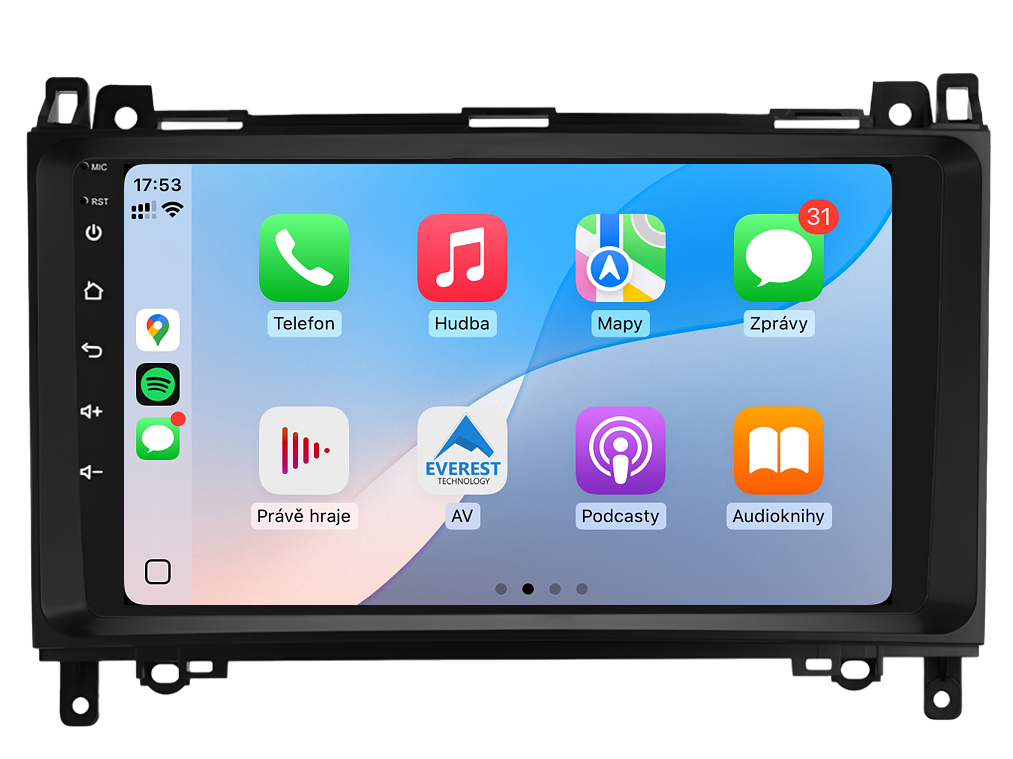 S 2DIN autorádiem Isudar T75-IEV102 QLED pro Mercedes-Benz A, B, V, Viano, Vito, Sprinter nebo Volkswagen Crafter máte svět hudby, zábavy a informací doslova na dosah ruky. Hlavním rysem je bezesporu přehledná 9 palcová QLED obrazovka s neuvěřitelným rozlišením 1280 x 720. Lze na ní sledovat video i prohlížet fotografie s podporou Android aplikacemi. O špičkový výkon a plynulý běh aplikací se stará 8-jádrový procesor ve spolupráci se 8 GB RAM. Náročný posluchač jistě ocení funkci DSP neboli digitální signálový procesor, který násobně zvyšuje kvalitu reprodukce. Za pomocí 4G modulu se z Vašeho autorádia stane smartphone, ze kterého můžete hravě odesílat SMS zprávy, využívat online GPS navigaci s aktuální dopravní situací či využívat další cenné funkce. Váš mobilní telefon již zůstane navždy v kapse díky funkci CarPlay a Android Auto. Díky operačnímu systému Android 14 budete mít ve svém automobilu kompletní multimediální centrum přeplněné funkcemi a aplikacemi. Pohled z parkovací kamery Vám umožní bezpečné a ničím nerušené couvání. Autorádio nabízí možnost výběru z různých jazyků, které obsahují přeloženou základní část systému do českého jazyka.