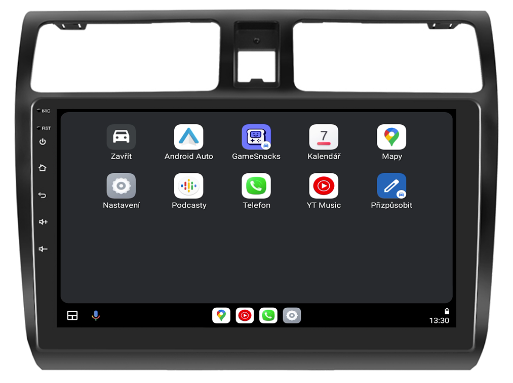 2DIN autorádiem Isudar T75-IEV73 QLED pro Suzuki Swift I (Gen 3) máte svět hudby, zábavy a informací doslova na dosah ruky. Hlavním rysem je bezesporu přehledná 10,1 palcová QLED obrazovka s neuvěřitelným rozlišením 1280 x 720. Lze na ní sledovat video i prohlížet fotografie s podporou Android aplikacemi. O špičkový výkon a plynulý běh aplikací se stará 8-jádrový procesor ve spolupráci se 8 GB RAM. Náročný posluchač jistě ocení funkci DSP neboli digitální signálový procesor, který násobně zvyšuje kvalitu reprodukce. Za pomocí 4G modulu se z Vašeho autorádia stane smartphone, ze kterého můžete hravě odesílat SMS zprávy, využívat online GPS navigaci s aktuální dopravní situací či využívat další cenné funkce. Váš mobilní telefon již zůstane navždy v kapse díky funkci CarPlay a Android Auto. Díky operačnímu systému Android 14 budete mít ve svém automobilu kompletní multimediální centrum přeplněné funkcemi a aplikacemi. Pohled z parkovací kamery Vám umožní bezpečné a ničím nerušené couvání. Autorádio nabízí možnost výběru z různých jazyků, které obsahují přeloženou základní část systému do českého jazyka.