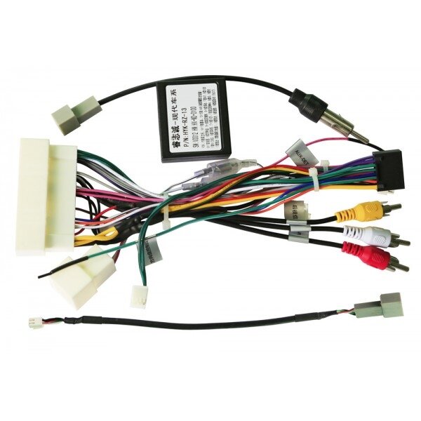 Káblový zväzok obsahuje redukciu na pôvodné USB, vstup pre kameru, RCA AUX a redukciu na anténu DIN/Hyundai/Kia.