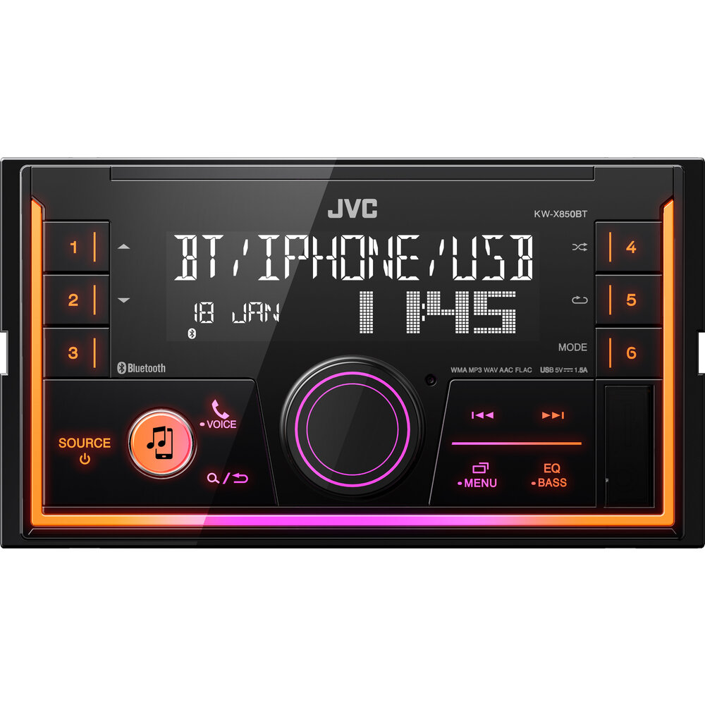 JVC 2DIN autorádio bez mechaniky/Bluetooth/USB/AUX/Multicolor KW-X850BT