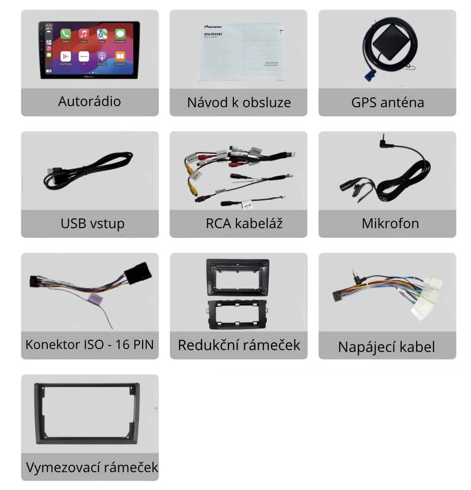 Autorádio Pioneer SPH-PF97BT s velkým 9" dotykovým displejem nabízí moderní výbavu včetně bezdrátového Apple CarPlay a Android Auto, Bluetooth handsfree, WebLink 3.0 a kvalitního DSP zvukového procesoru. Díky podpoře couvací kamery, jednoduchému ovládání a konstrukci PERFECT FIT, která umožňuje instalaci do různých typů vozidel, je ideální volbou pro každého, kdo chce komfort, bezpečnost a špičkový zvuk v jednom zařízení.