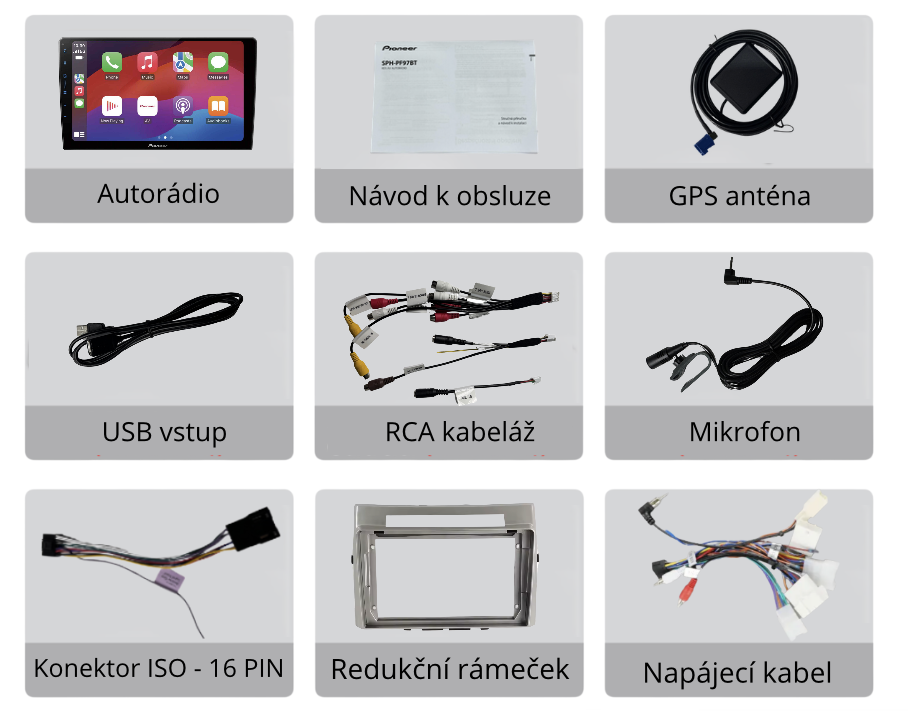 Autorádio Pioneer SPH-PF97BT s velkým 9" dotykovým displejem nabízí moderní výbavu včetně bezdrátového Apple CarPlay a Android Auto, Bluetooth handsfree, WebLink 3.0 a kvalitního DSP zvukového procesoru. Díky podpoře couvací kamery, jednoduchému ovládání a konstrukci PERFECT FIT, která umožňuje instalaci do různých typů vozidel, je ideální volbou pro každého, kdo chce komfort, bezpečnost a špičkový zvuk v jednom zařízení.