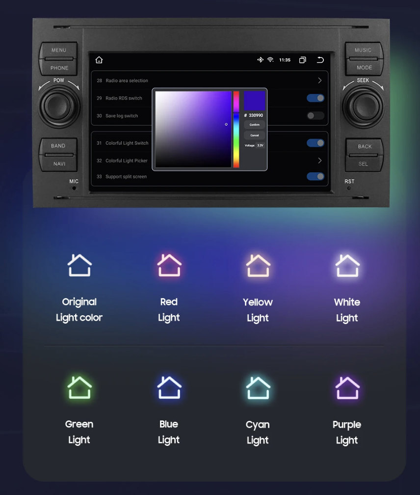 Díky širokému spektru barev si můžete nastavit barvu podsvícení dle vaší libosti.