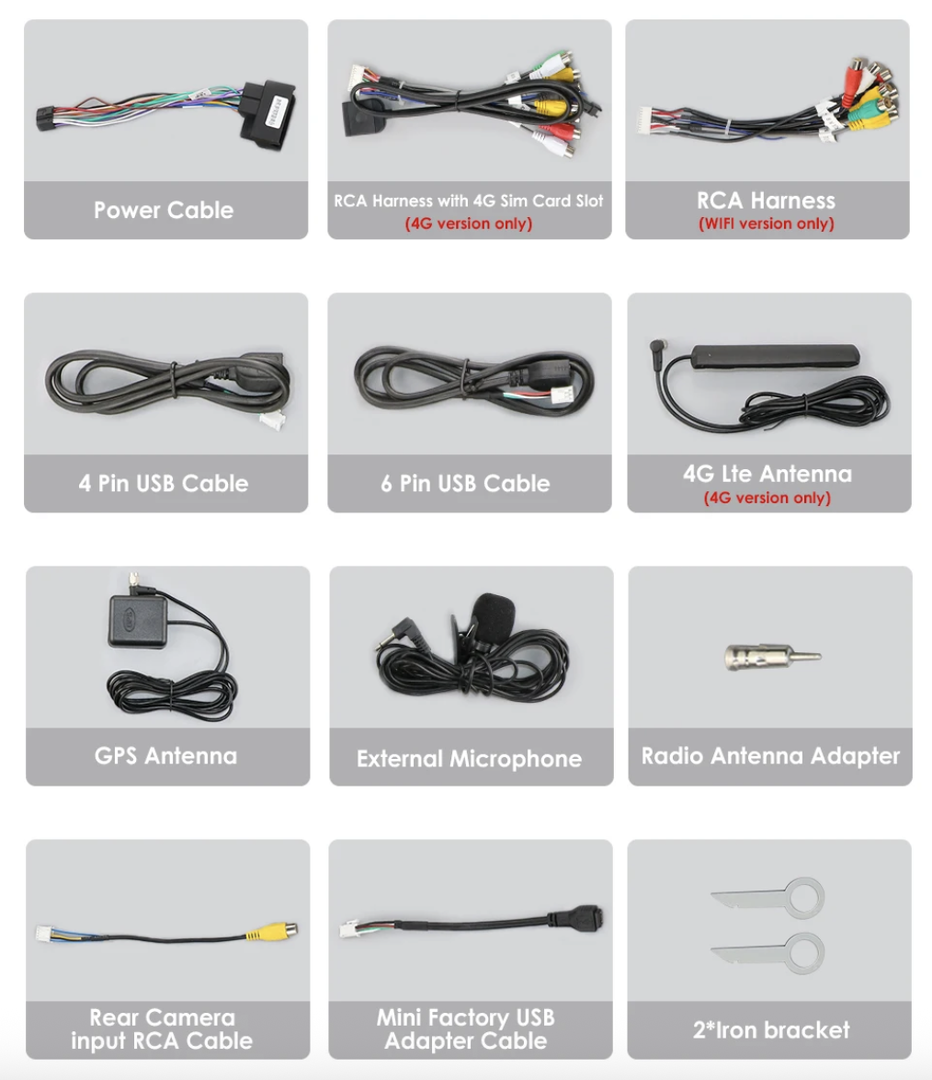 - RCA kabeláž včetně slotu pro SIM kartu (Slot pro SIM pouze u verzí S),