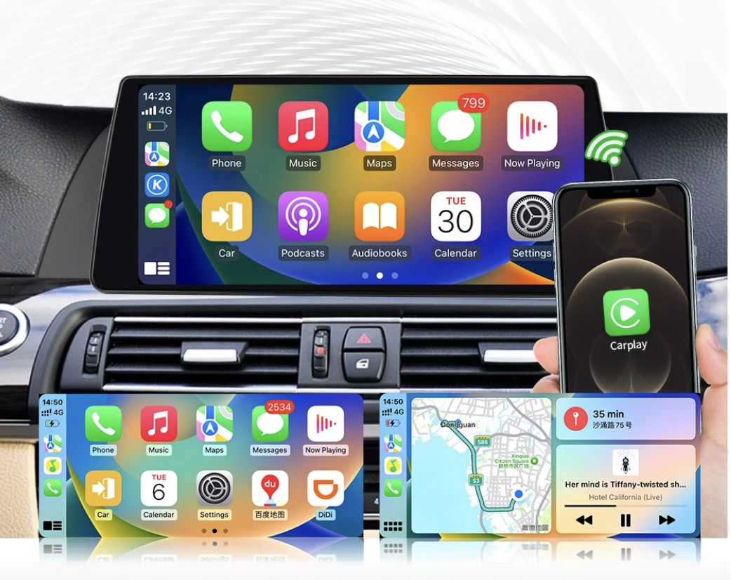 Bezdrátový Apple CarPlay a Android Auto umožňují pohodlné propojení chytrého telefonu s Android rádiem bez nutnosti použít USB kabel. Po spárování přes Bluetooth nebo Wi-Fi můžete ovládat navigaci, hudbu, hovory i zprávy přímo na displeji rádia pomocí dotyku nebo hlasových asistentů (Siri / Google Assistant). Funkce zajišťuje bezpečnější a komfortnější používání telefonu během jízdy.