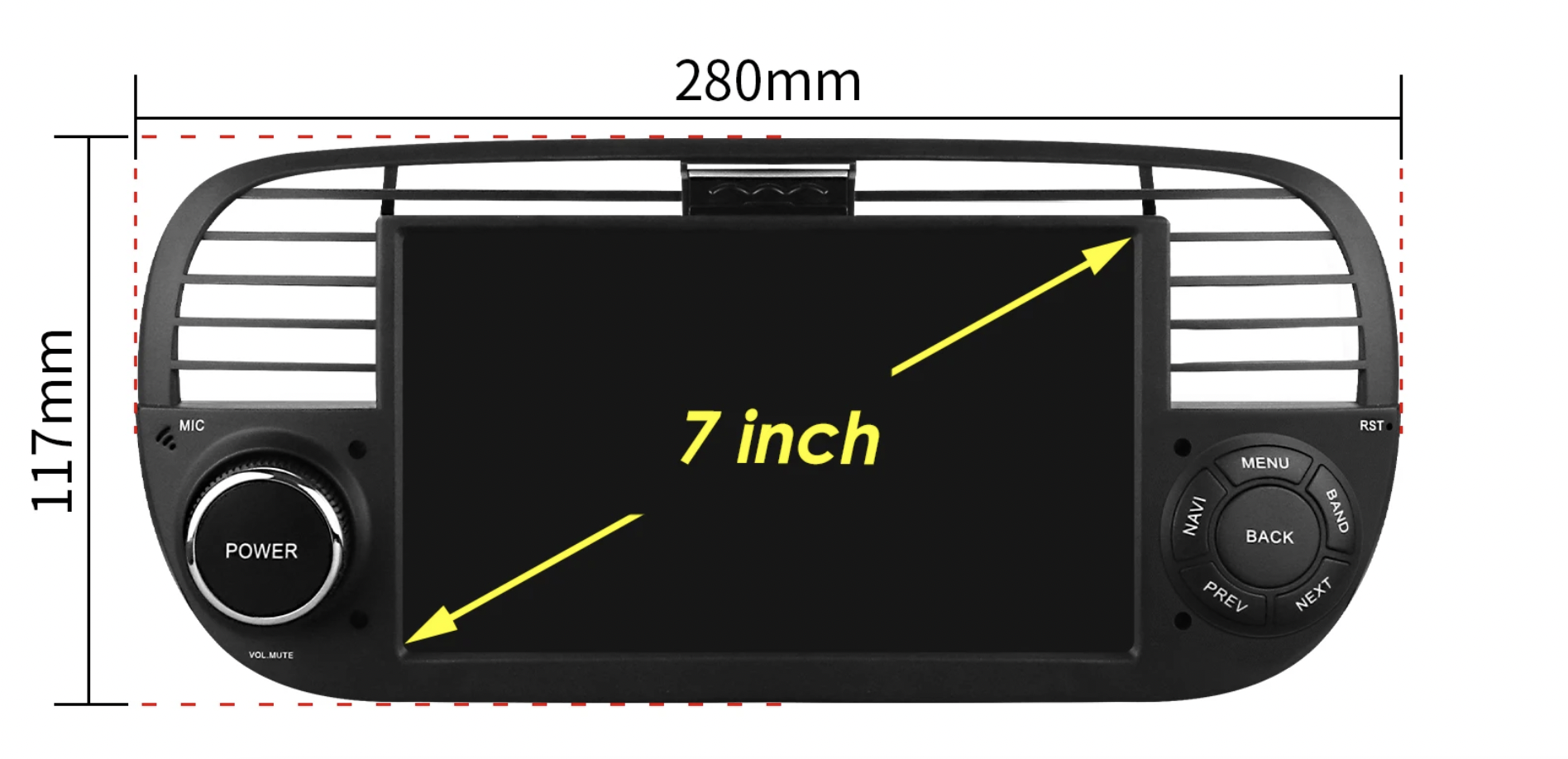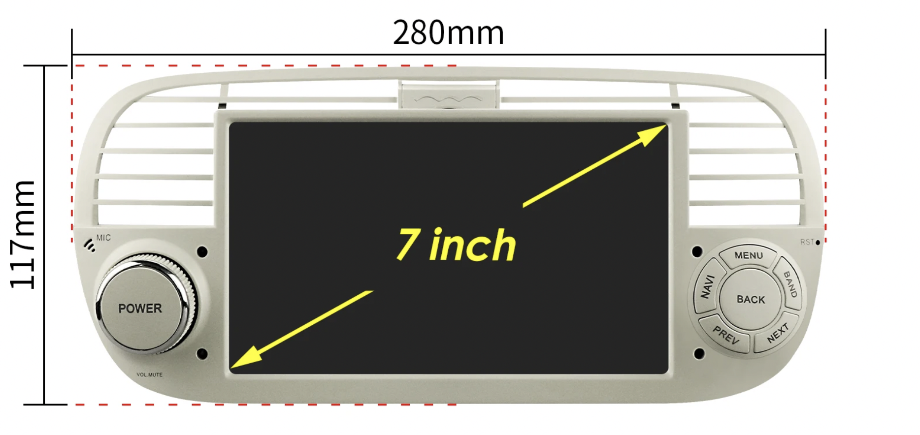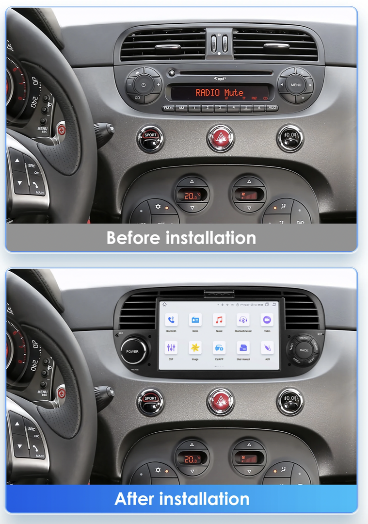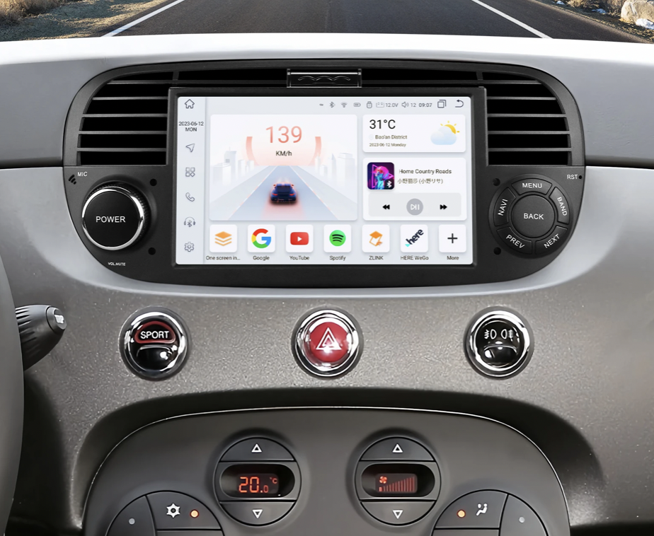 HIZPO 4SFT50071 7“ Android 13 Autorádio Autorádio Fiat 500 (4+32GB) Barva: Černá CHR2777_CER