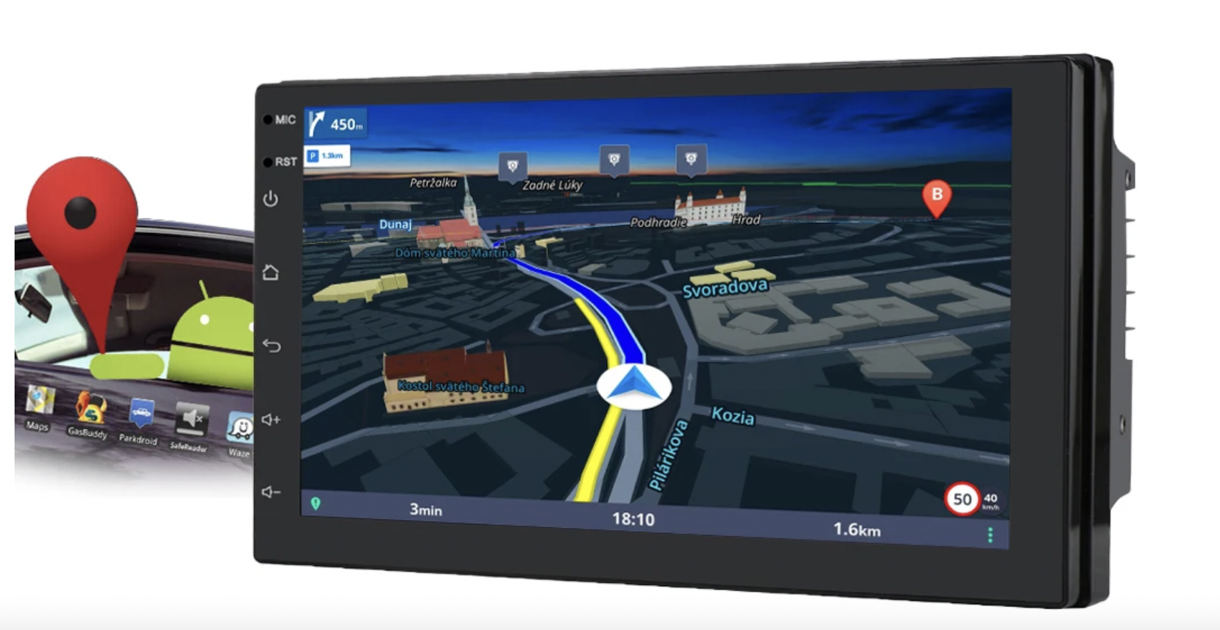 Integrovaná GPS navigace iGO Primo, díky které se nikdy neztratíte. Je také možné instalovat jakoukoliv jinou, vámi preferovanou navigaci z Obchodu Play (např. Waze, Mapy.cz apod.)