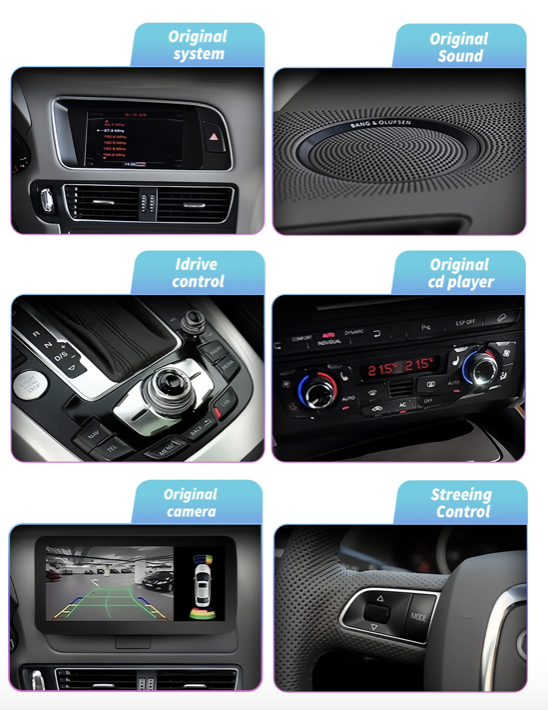 Modernizujte své Audi A4 B8 nebo A5 s novým 10,25" dotykovým autorádiem, které nahrazuje původní horní displej, aniž by zasahovalo do tovární infotainment jednotky. Zařízení přináší moderní Android rozhraní s podporou Bluetooth 5.0 (dvoukanálové), Wi-Fi, GPS a slotem pro datovou SIM kartu. Nechybí bezdrátové Apple CarPlay a Android Auto. Systém plně podporuje původní funkce vozidla včetně ovládání z volantu, parkovacích senzorů a tovární kamery. Lze připojit i aftermarket zadní kameru (CINCH – AHD720p/1080p, CVBS, NTSC, PAL) a přední DVR kameru. Pomocí Bluetooth OBD2 modulu (není součástí balení) je možné číst diagnostické chybové kódy vozidla.