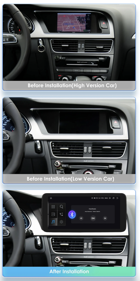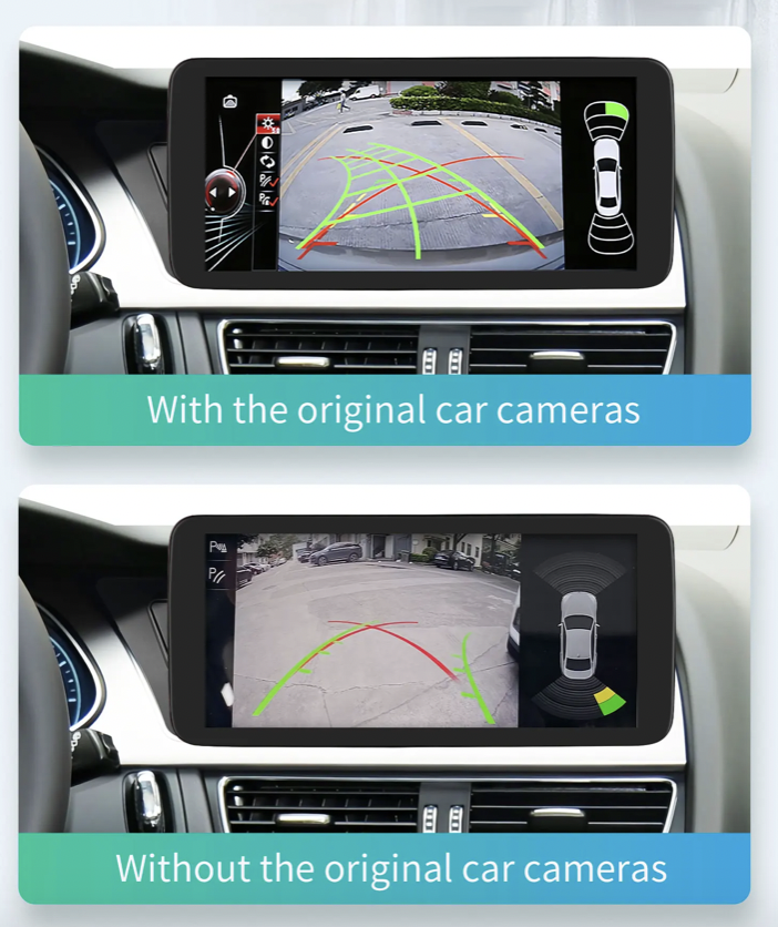 Modernizujte své Audi Q5 s novým 10,25" dotykovým autorádiem, které nahrazuje původní horní displej, aniž by zasahovalo do tovární infotainment jednotky. Zařízení přináší moderní Android rozhraní s podporou Bluetooth 5.0 (dvoukanálové), Wi-Fi, GPS a slotem pro datovou SIM kartu. Nechybí bezdrátové Apple CarPlay a Android Auto. Systém plně podporuje původní funkce vozidla včetně ovládání z volantu, parkovacích senzorů a tovární kamery. Lze připojit i aftermarket zadní kameru (CINCH – AHD720p/1080p, CVBS, NTSC, PAL) a přední DVR kameru. Pomocí Bluetooth OBD2 modulu (není součástí balení) je možné číst diagnostické chybové kódy vozidla.
