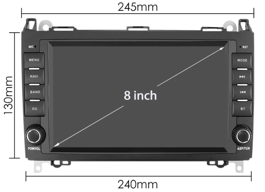 HIZPO BENZB20081 Autorádio 8“ Android 13 pro Mercedes Benz A, B, V, Sprinter, VW Crafter Model: 4SBENZB20081 (4+32GB) CHR4SBENZB20081