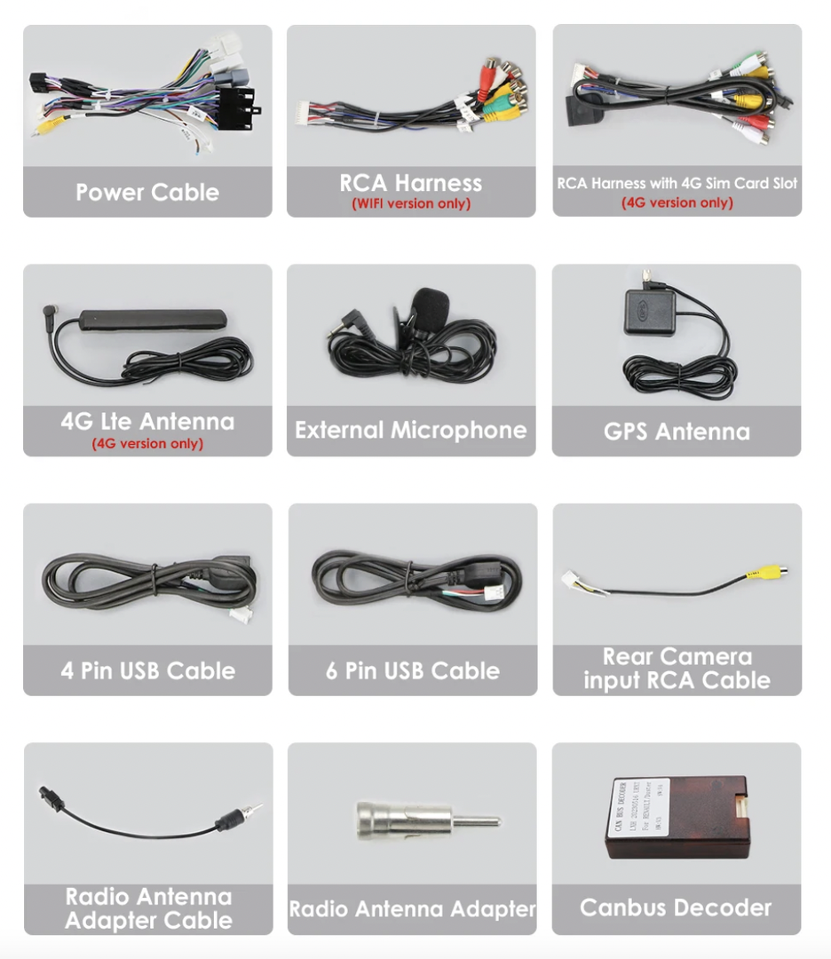 - RCA kabeláž včetně slotu pro SIM kartu (Slot pro SIM pouze u verzí S)