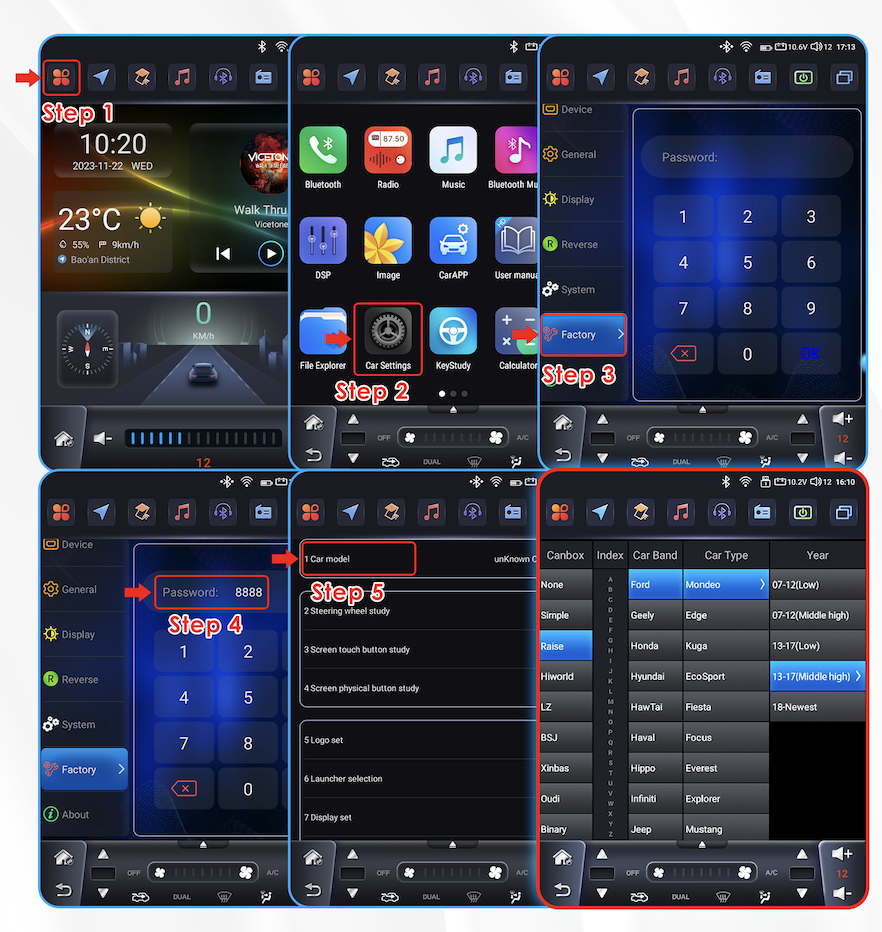 Pro komunikaci autorádia s vozidlem je nutné nastavit model vozidla podle obrázku.