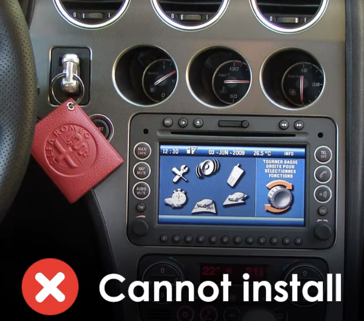 Autorádio není možné instalovat do vozidel s továrním autorádiem, viz. obrázek. Je zapotřebí zakoupit jiný typ napájecího kabelu. Pro bližší informace kontaktujte naši zákaznickou podporu: info@chytraautoradia.cz a zašlete nám fotografii továrního konektoru ve vozidle.