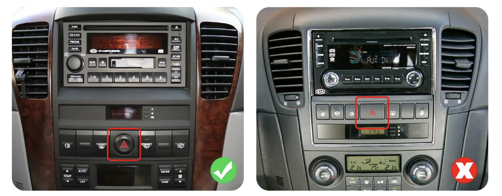 Nelze instalovat do vozidel s panelem na obrázku níže