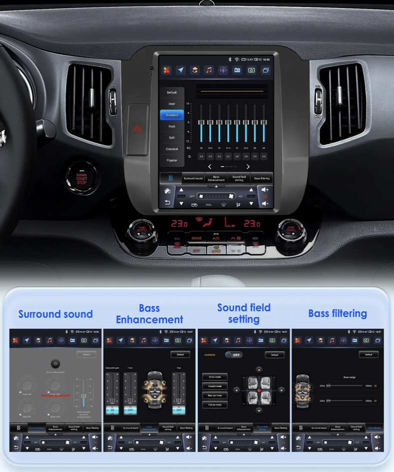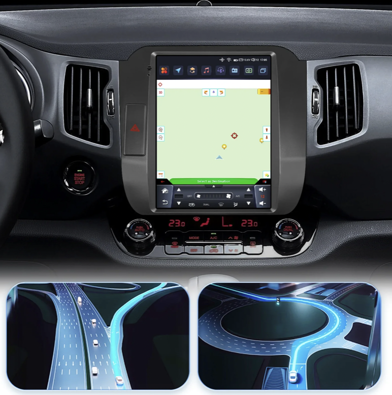 Rychlý systém Android 13 nabízí bezdrátové zrcadlení pro snadné propojení s Android i iPhone. Díky Apple CarPlay a Android Auto máte rychlý přístup k funkcím telefonu. Bluetooth umožňuje příjem hovorů a přehrávání hudby přímo z telefonu. Rádio lze připojit k Wi-Fi nebo vložit SIM kartu (pouze u některých výkonnostních verzí) pro připojení k internetu. Integrovaná navigace IGO Primofunguje bez internetu a rádio podporuje tlačítka na volantu i parkovací senzory. K dispozici je také možnost připojení parkovací kamery (CINCH). Rádio se automaticky vypne po vytažení klíče, aby nevybíjelo baterii.