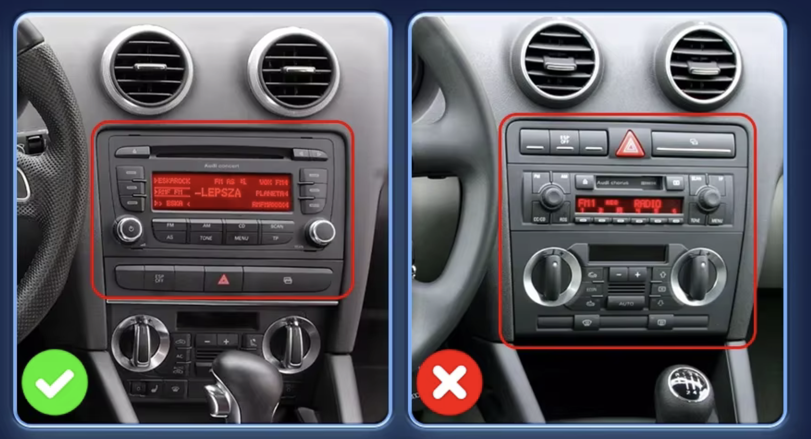 - Autorádio je vhodné pouze do určitých přístrojových desek.