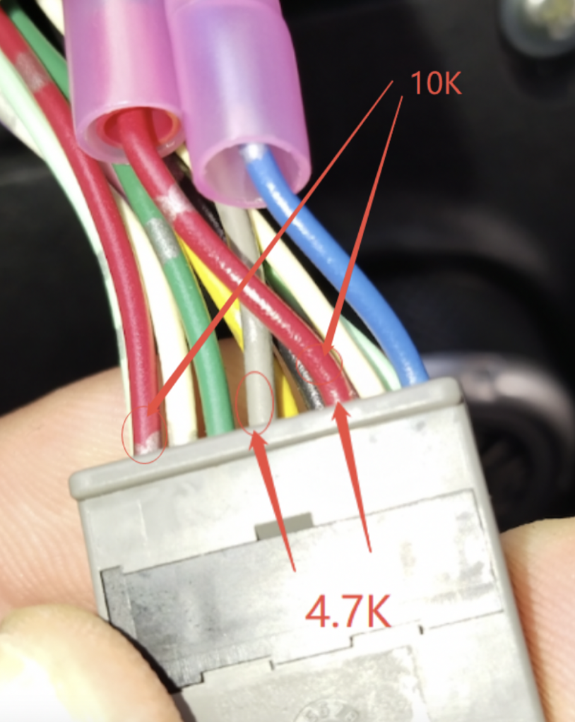 Po instalaci autorádia je také potřeba zapojit 4.7K a 10K rezistory do konektorů kontrolky airbagů, aby došlo k vymazání chybové hlášky airbagů. Pokud se i zapojení rezistorů vyskytuje chybová hláška airbagů, pak je nutné tuto chybu diagnosticky vymazat.