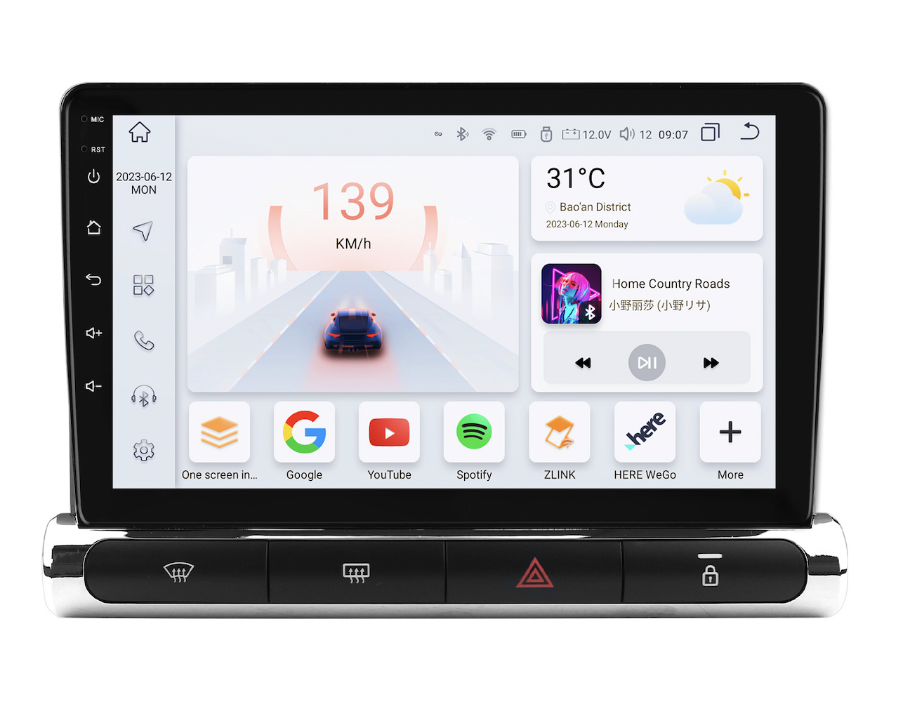 Velká 9" QLED dotyková obrazovka