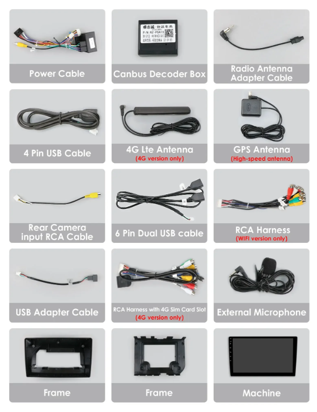 - Napájecí kabel včetně CANbus dekodéru,
