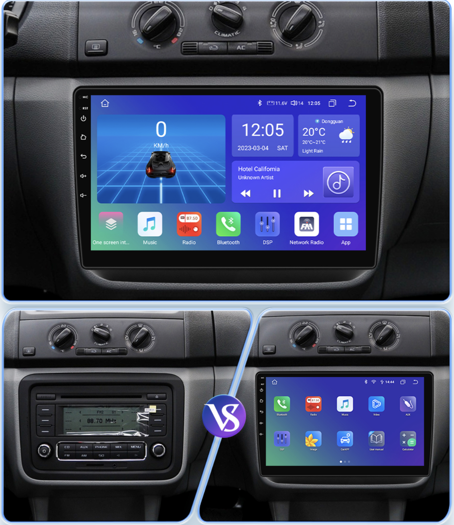 Rychlý systém Android 13 nabízí bezdrátové zrcadlení pro snadné propojení s Android i iPhone. Díky Apple CarPlay a Android Auto máte rychlý přístup k funkcím telefonu. Bluetooth umožňuje příjem hovorů a přehrávání hudby přímo z telefonu. Rádio lze připojit k Wi-Fi nebo vložit SIM kartu (pouze u některých výkonnostních verzí) pro připojení k internetu. Integrovaná navigace IGO Primo funguje bez internetu a rádio podporuje tlačítka na volantu i parkovací senzory. K dispozici je také možnost připojení parkovací kamery (CINCH). Rádio se automaticky vypne po vytažení klíče, aby nevybíjelo baterii.