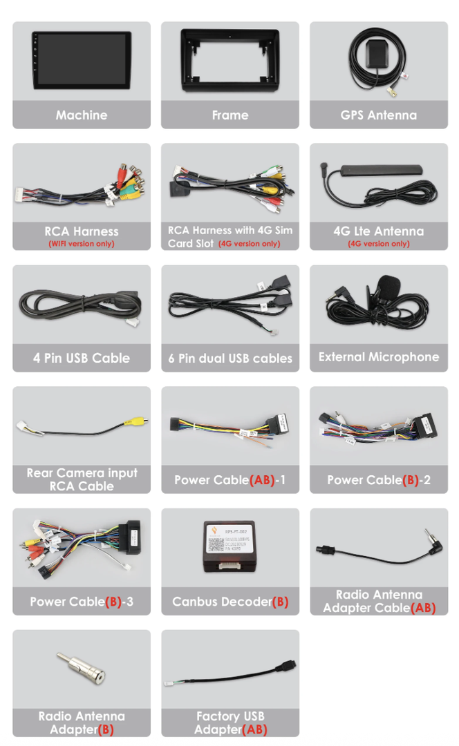 - Napájecí kabeláž včetně CANbusu (celkem 3 typy)