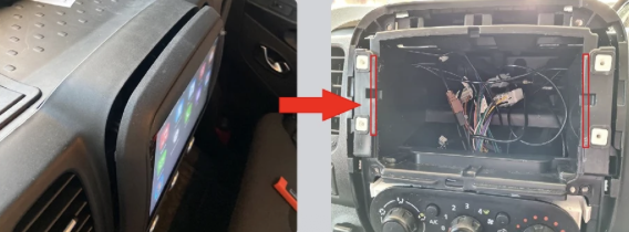 - Pokud po instalaci bude rámeček předsazený, pak je potřeba upravit otvor ve vozidle následujícím způsobem: