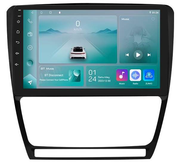 Rychlý systém Android 14 nabízí bezdrátové zrcadlení pro snadné propojení s Android i iPhone. Díky Apple CarPlay a Android Auto máte rychlý přístup k funkcím telefonu. Bluetooth umožňuje příjem hovorů a přehrávání hudby přímo z telefonu. Rádio lze připojit k Wi-Fi nebo vložit SIM kartu (pouze u některých výkonnostních verzí) pro připojení k internetu. Integrovaná navigace IGO Primo funguje bez internetu a rádio podporuje tlačítka na volantu i parkovací senzory. K dispozici je také možnost připojení parkovací kamery (CINCH). Rádio se automaticky vypne po vytažení klíče, aby nevybíjelo baterii.