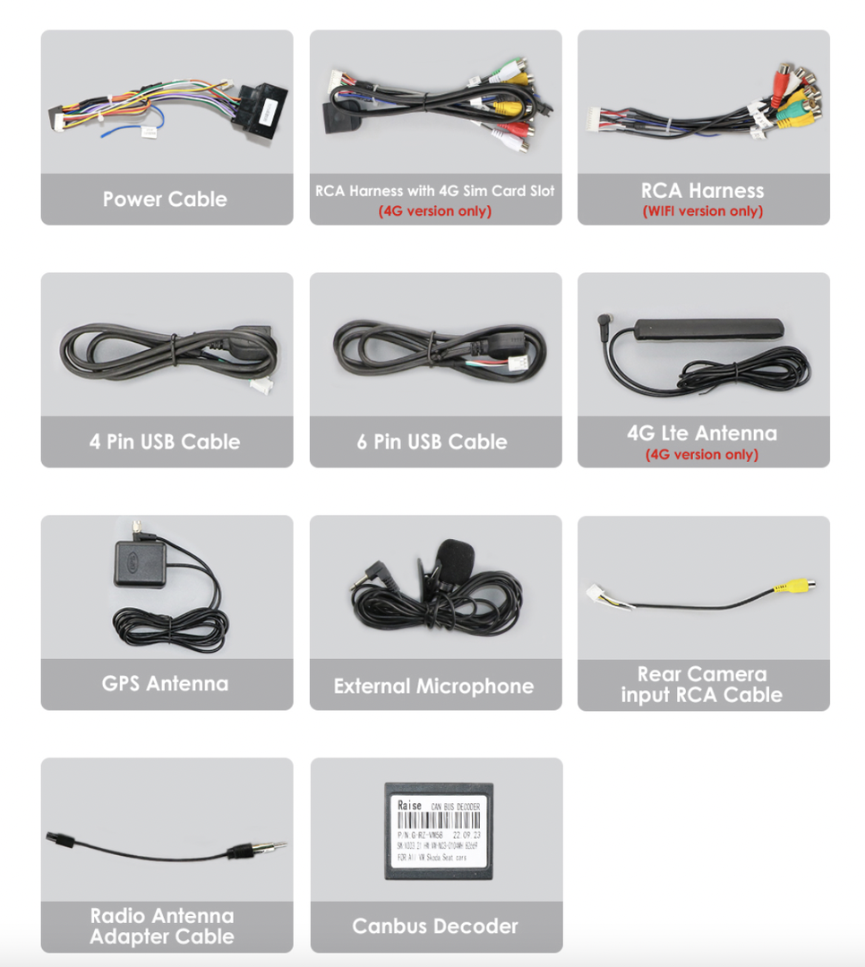 - RCA kabeláž včetně slotu pro SIM kartu (Slot pro SIM pouze u verzí S)