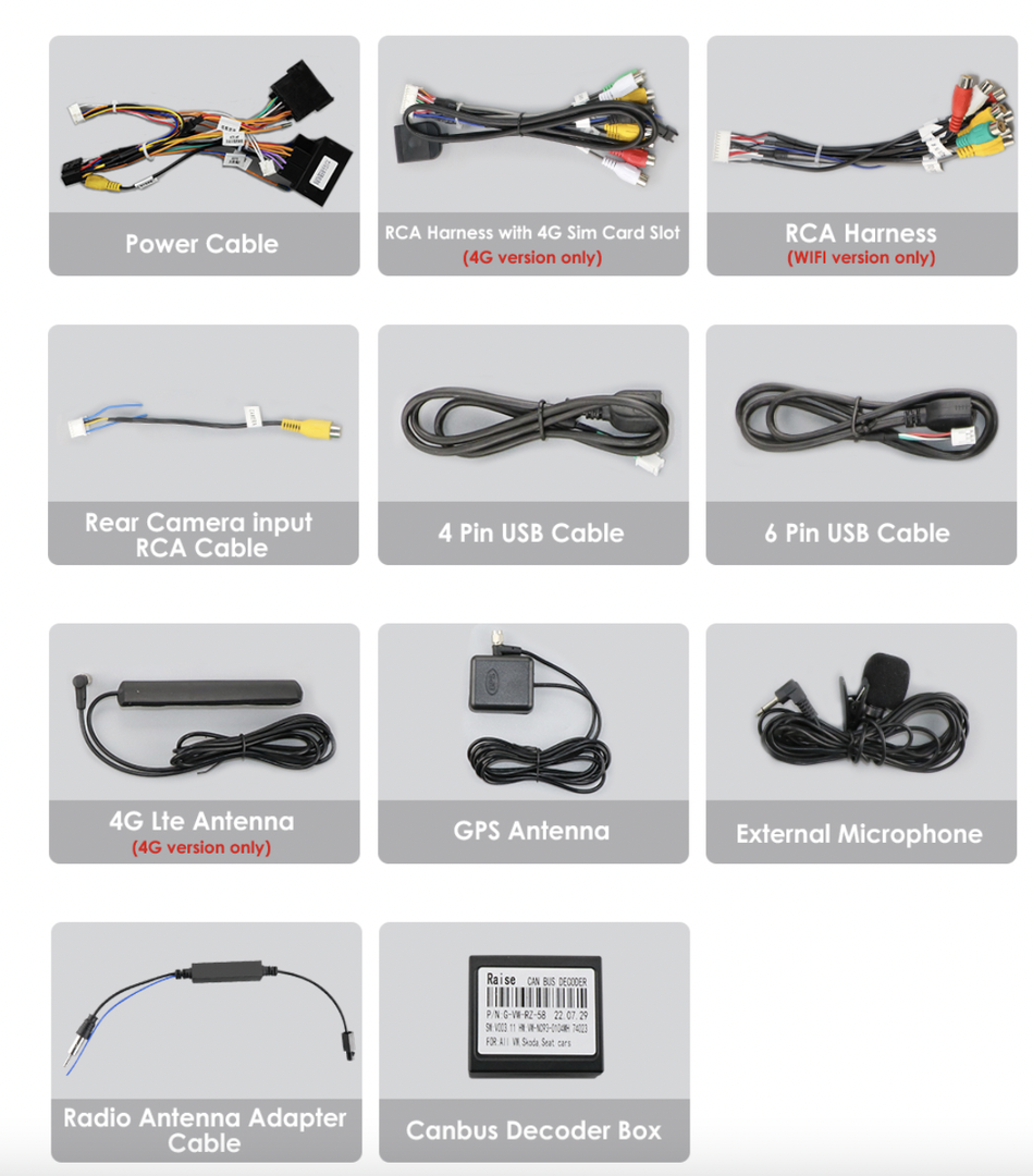 - RCA kabeláž včetně slotu pro SIM kartu (Slot pro SIM pouze u verzí S),