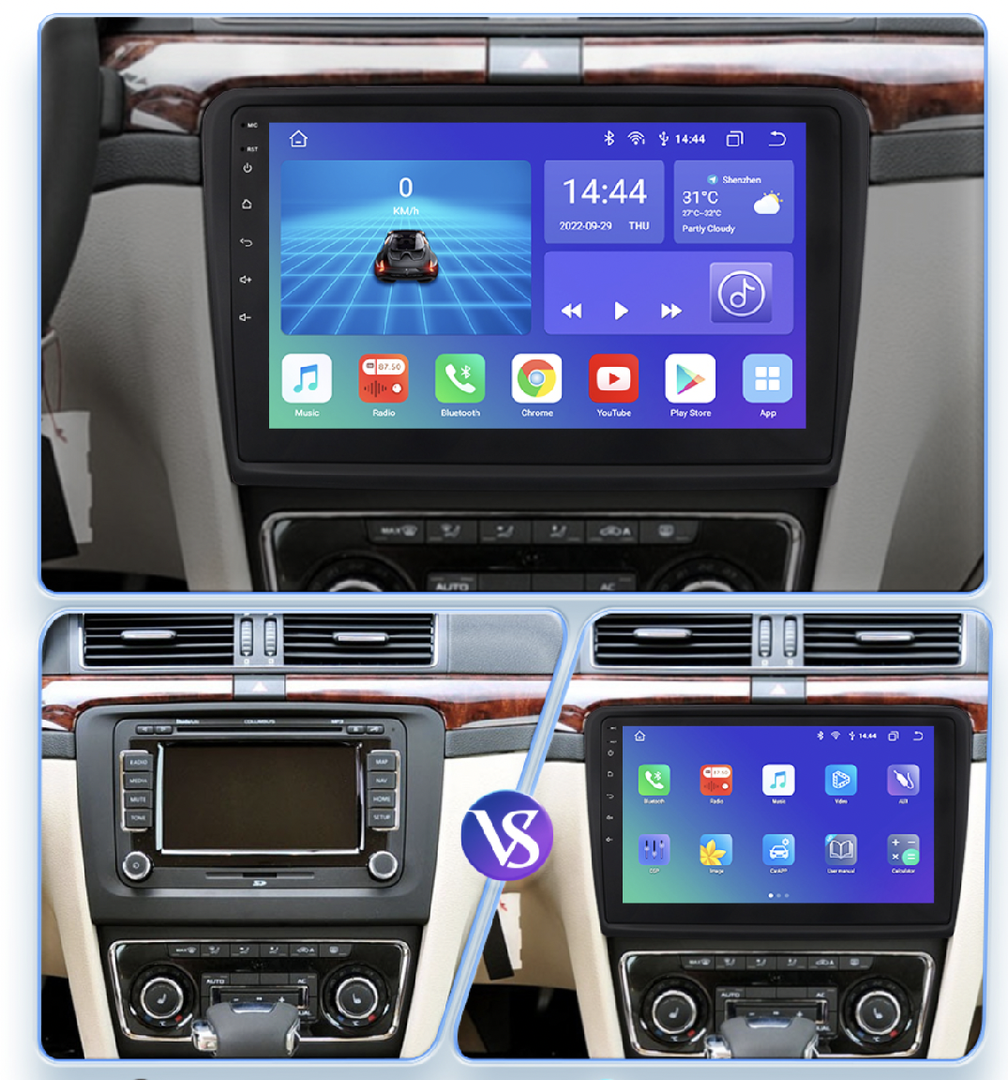Rychlý systém Android 13 nabízí bezdrátové zrcadlení pro snadné propojení s Android i iPhone. Díky Apple CarPlay a Android Auto máte rychlý přístup k funkcím telefonu. Bluetooth umožňuje příjem hovorů a přehrávání hudby přímo z telefonu. Rádio lze připojit k Wi-Fi nebo vložit SIM kartu (pouze u některých výkonnostních verzí) pro připojení k internetu. Integrovaná navigace IGO Primo funguje bez internetu a rádio podporuje tlačítka na volantu i parkovací senzory. K dispozici je také možnost připojení parkovací kamery (CINCH). Rádio se automaticky vypne po vytažení klíče, aby nevybíjelo baterii.