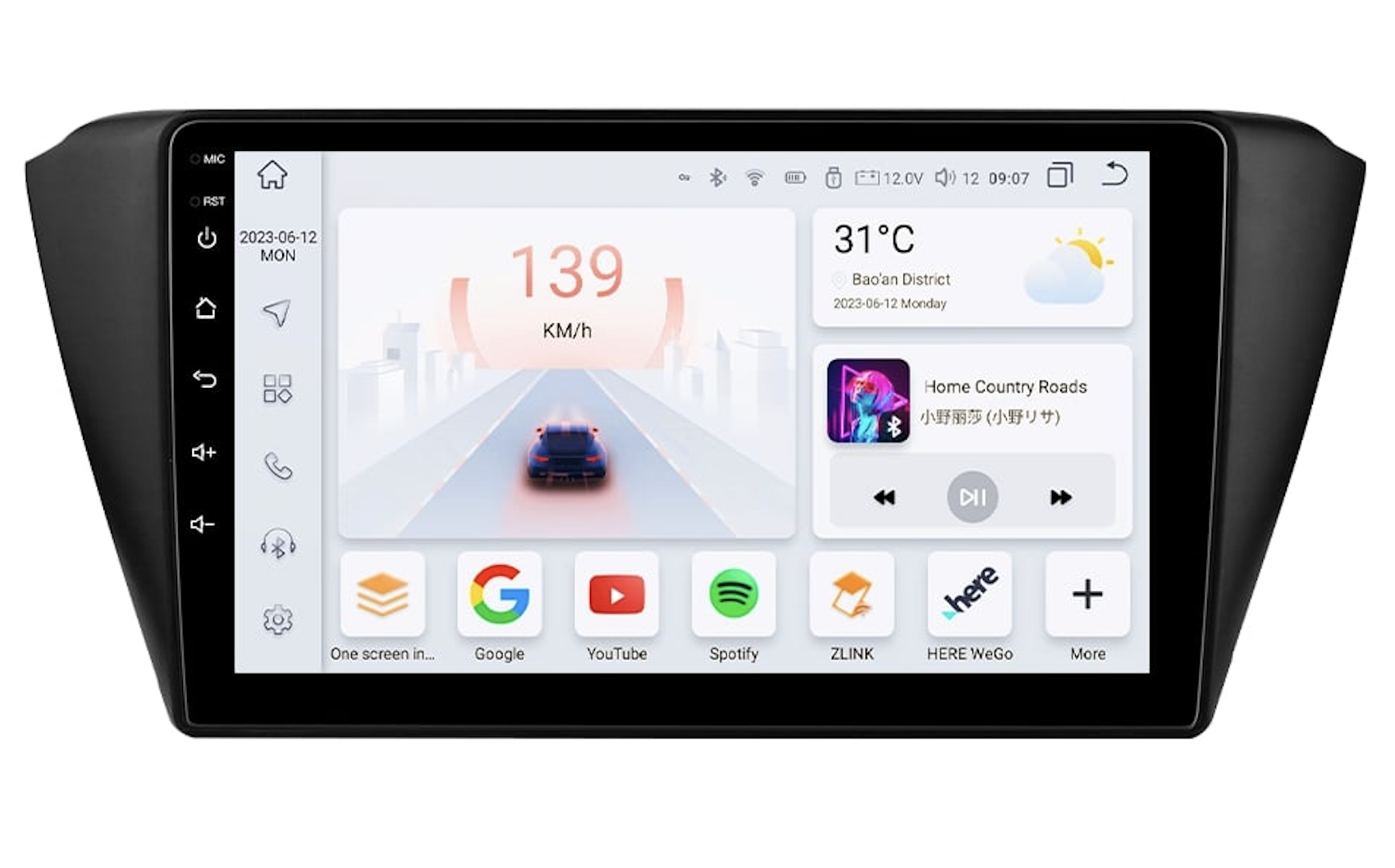 Velká 9" QLED dotyková obrazovka