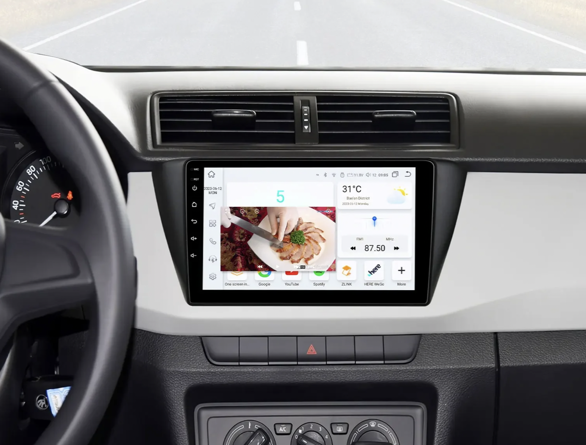 Rychlý systém Android 13 nabízí bezdrátové zrcadlení pro snadné propojení s Android i iPhone. Díky Apple CarPlay a Android Auto máte rychlý přístup k funkcím telefonu. Bluetooth umožňuje příjem hovorů a přehrávání hudby přímo z telefonu. Rádio lze připojit k Wi-Fi nebo vložit SIM kartu (pouze u některých výkonnostních verzí) pro připojení k internetu. Integrovaná navigace IGO Primo funguje bez internetu a rádio podporuje tlačítka na volantu i parkovací senzory. K dispozici je také možnost připojení parkovací kamery (CINCH). Rádio se automaticky vypne po vytažení klíče, aby nevybíjelo baterii.
