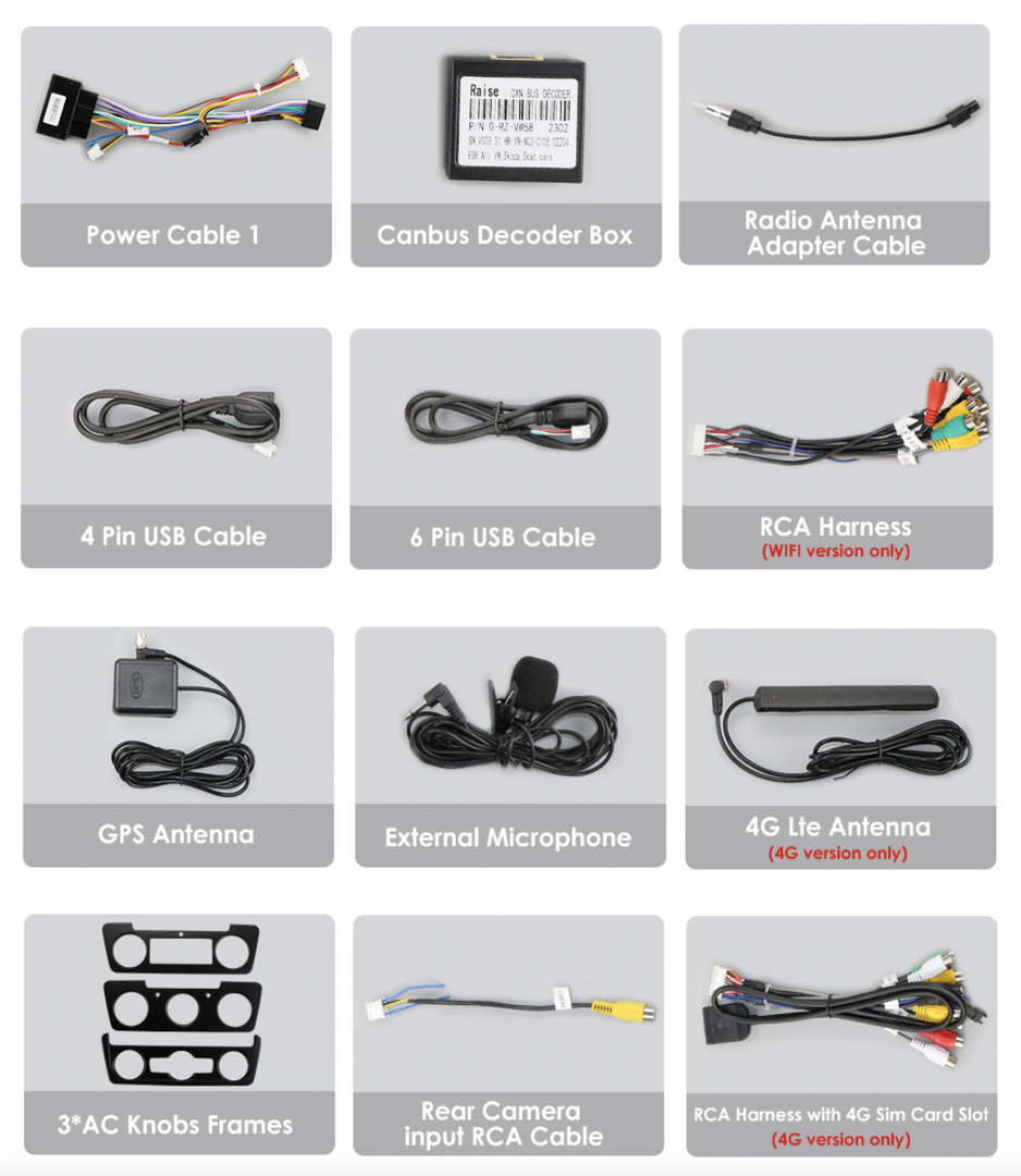 - RCA kabeláž včetně slotu pro SIM kartu (Slot pro SIM pouze u verzí S),