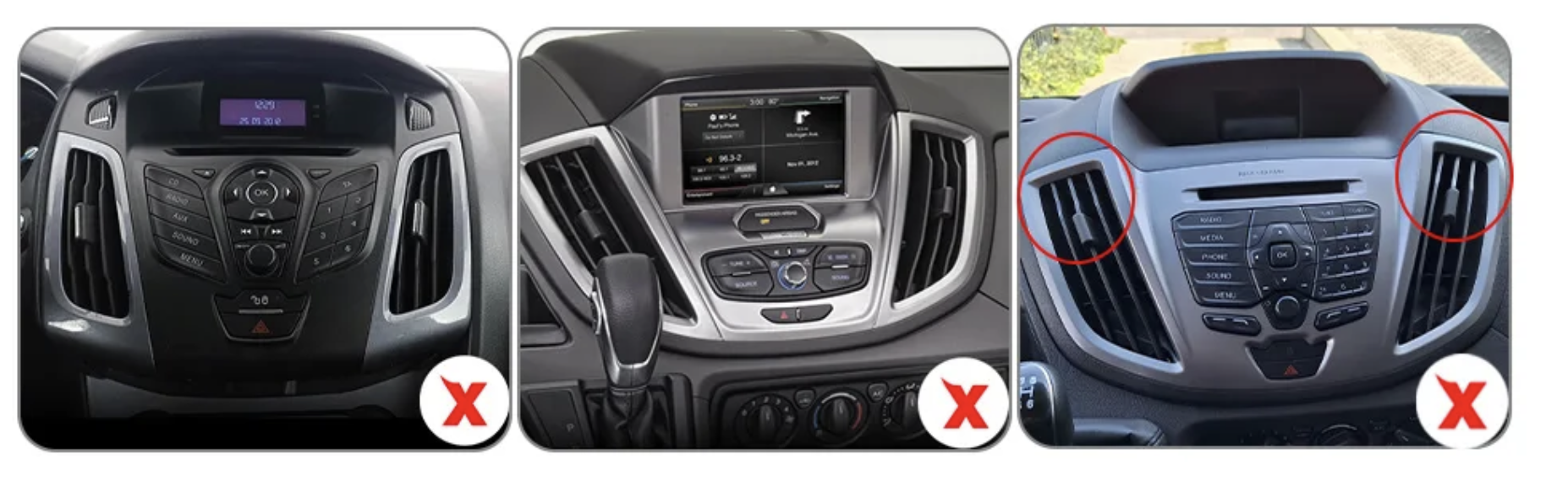 Autorádio není vhodné do přístrojových desek na obrázku: