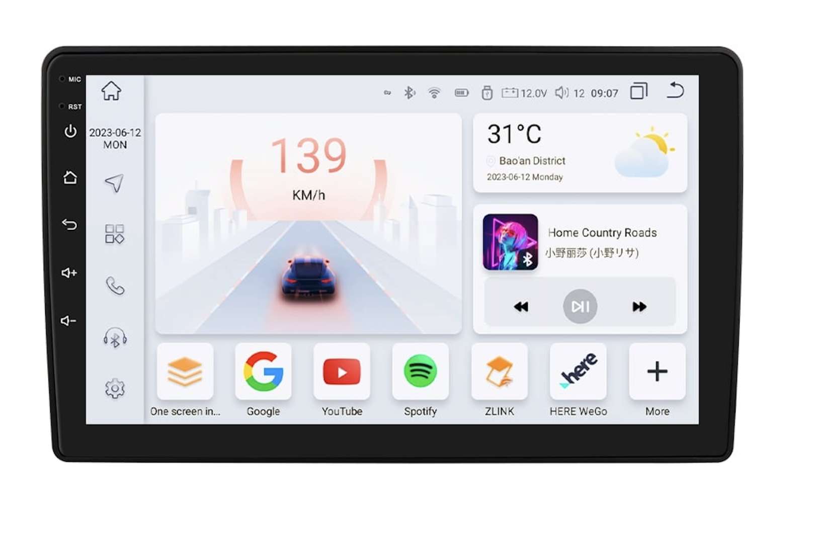 Velká 9" QLED dotyková obrazovka