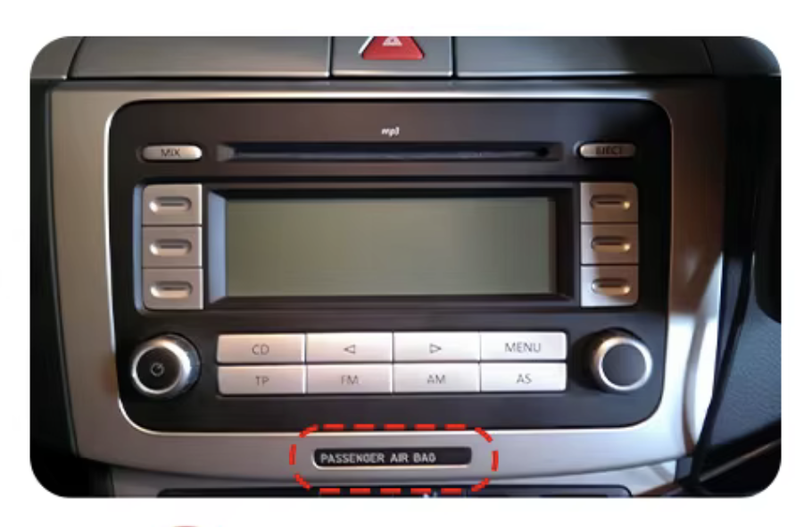 - Zejména v modelech B6, kde je ovládací prvek výstražných světel umístěn nad autorádiem je potřeba upravit nový redukční rámeček - upilovat výčnělek pro tlačítko výstražných světel, a umístit záslepku, aby rámeček bylo do vozidla možné upevnit.