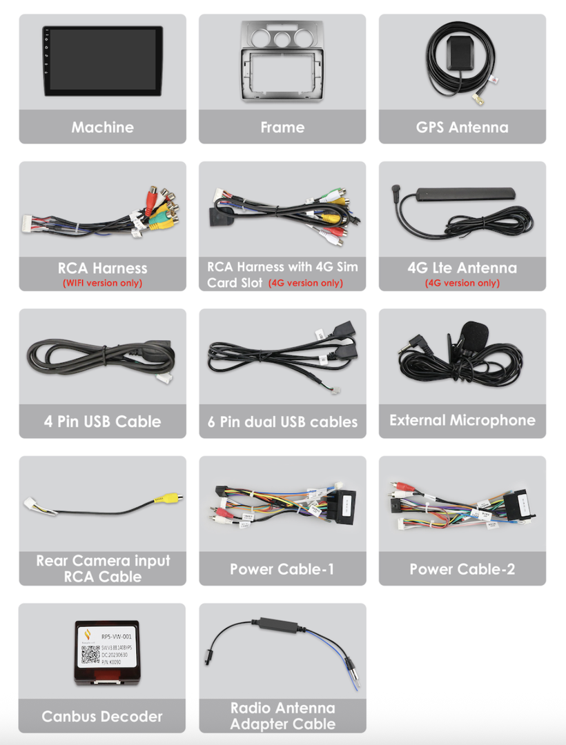 Rychlý systém Android 13 nabízí bezdrátové zrcadlení pro snadné propojení s Android i iPhone. Díky Apple CarPlay a Android Auto máte rychlý přístup k funkcím telefonu. Bluetooth umožňuje příjem hovorů a přehrávání hudby přímo z telefonu. Rádio lze připojit k Wi-Fi nebo vložit SIM kartu (pouze u některých výkonnostních verzí) pro připojení k internetu. Integrovaná navigace IGO Primo funguje bez internetu a rádio podporuje tlačítka na volantu i parkovací senzory. K dispozici je také možnost připojení parkovací kamery (CINCH). Rádio se automaticky vypne po vytažení klíče, aby nevybíjelo baterii.