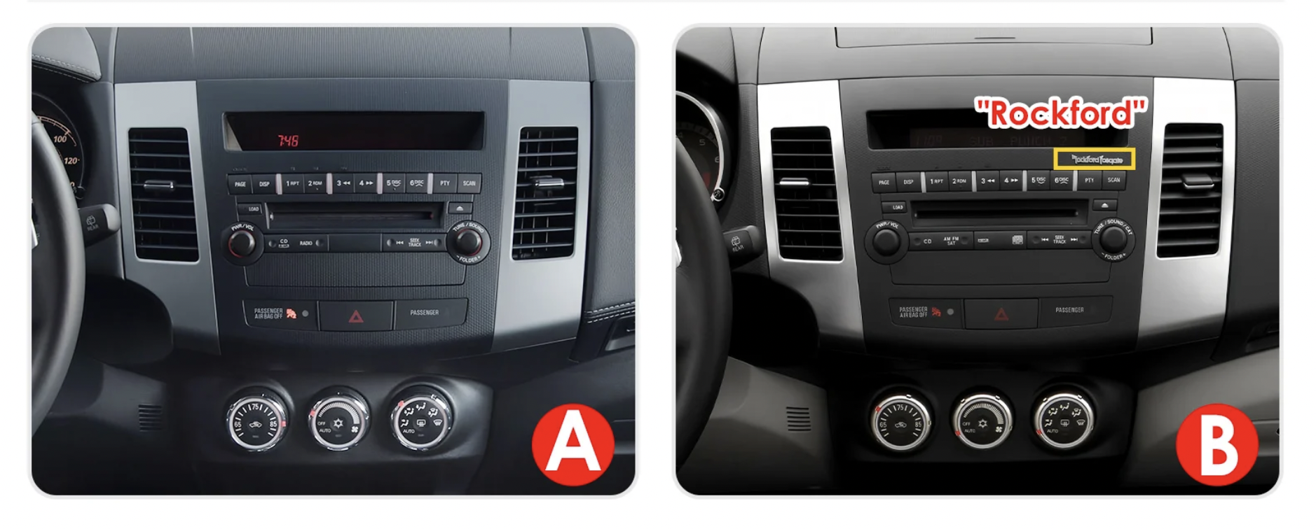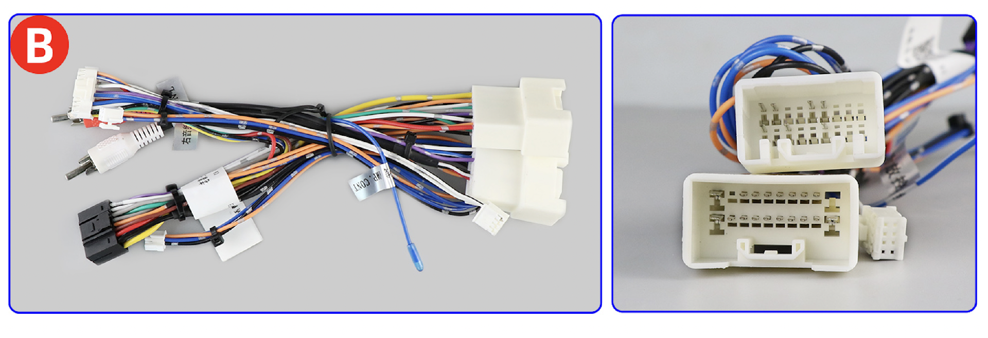 Na výběr mezi variantou napájecího kabelu typu A (bez RockFord zesilovače) nebo B (s RockFord zesilovačem). Zvolte prosím podle druhu továrního rádia.