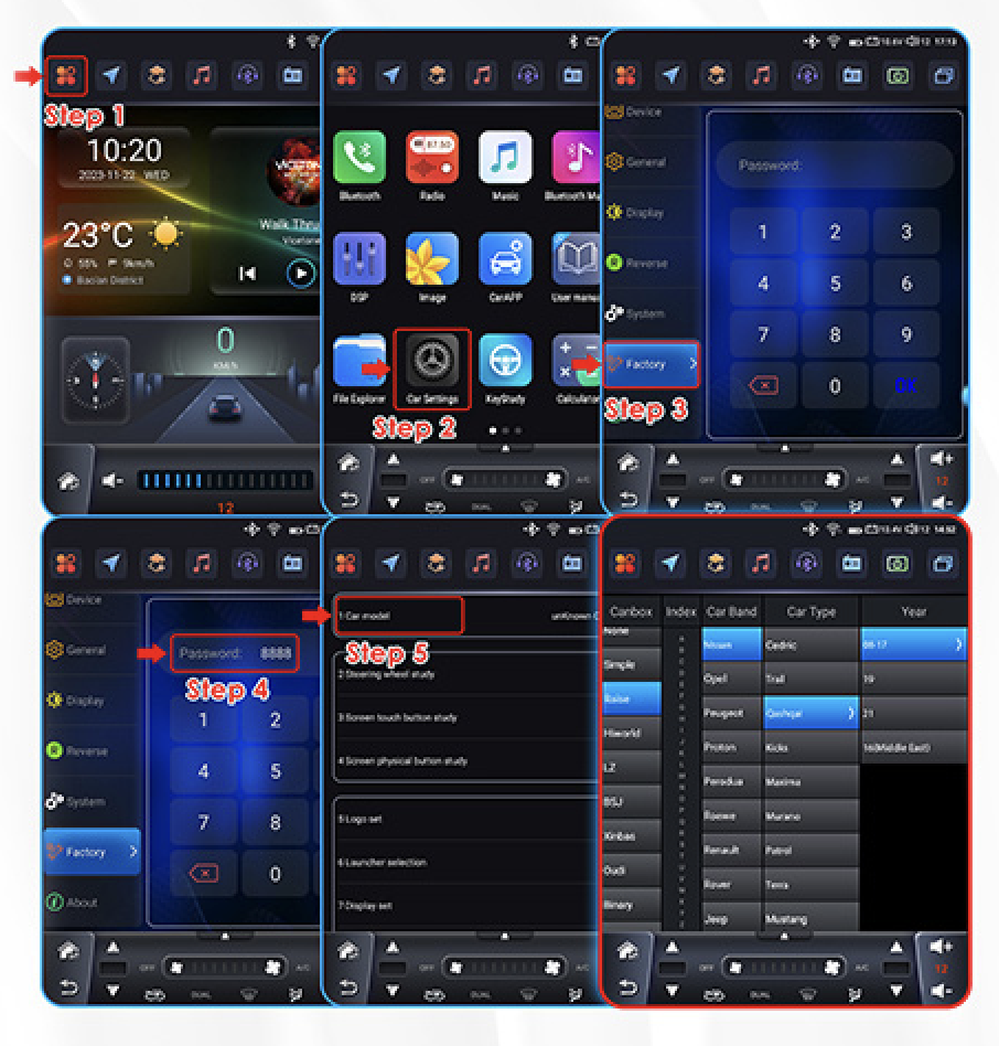 Pro komunikaci s vozidlem je potřeba nastavit model vozidla ve factory settings.