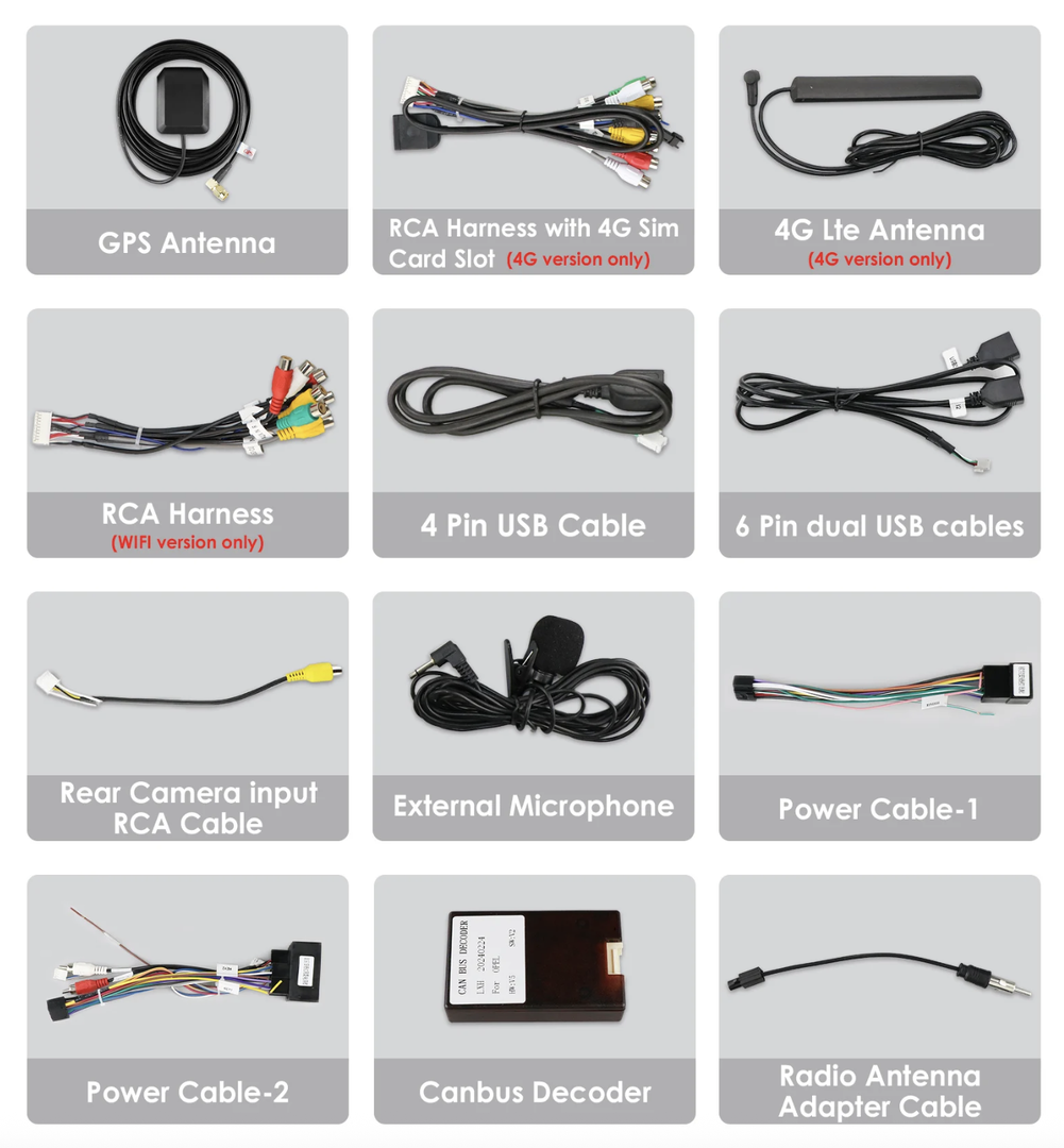 • Napájecí kabel QUADLOCK (s CANbusem) a ISO konektor,