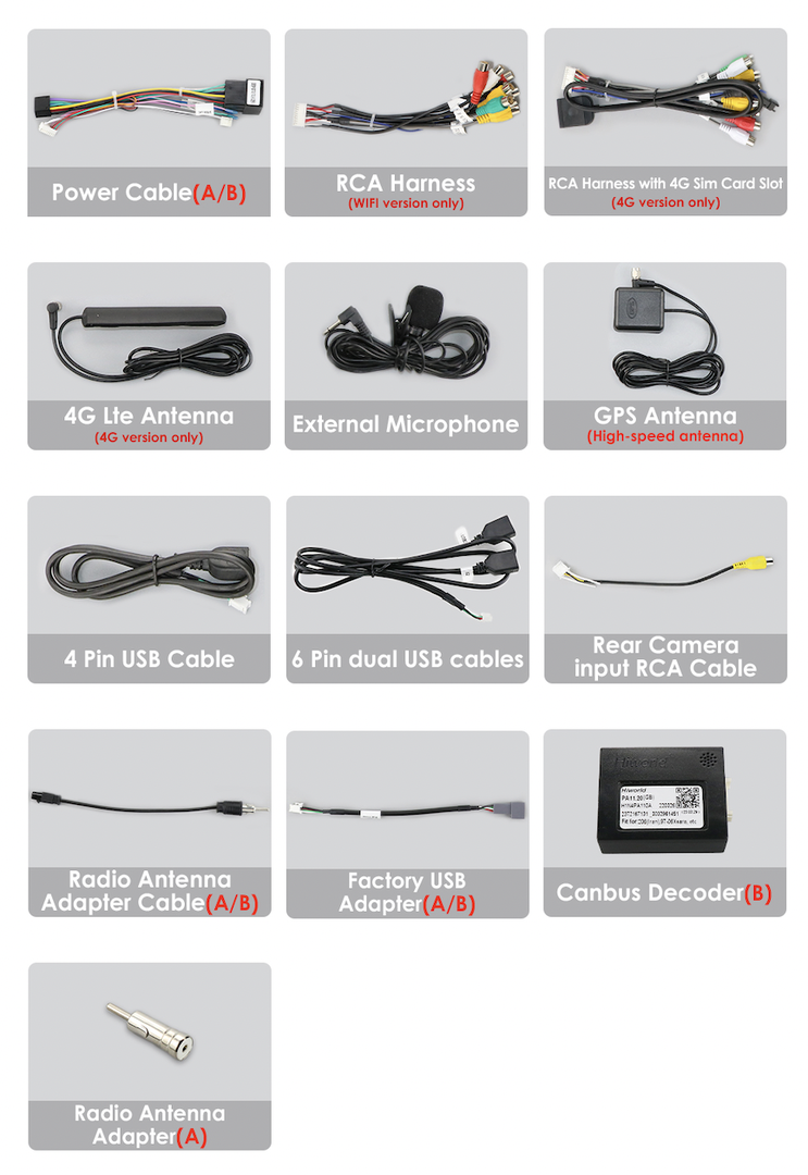 - RCA kabeláž včetně slotu pro SIM kartu (Slot pro SIM pouze u verzí S)