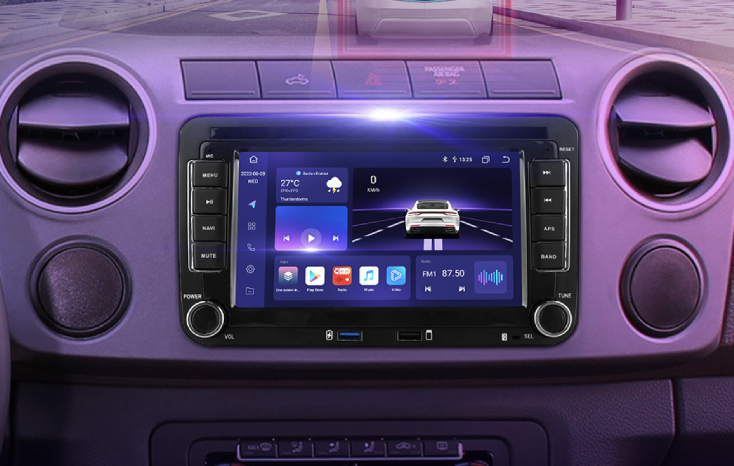 Rychlý systém Android 13 nabízí bezdrátové zrcadlení pro snadné propojení s Android i iPhone. Díky Apple CarPlay a Android Auto máte rychlý přístup k funkcím telefonu. Bluetooth umožňuje příjem hovorů a přehrávání hudby přímo z telefonu. Rádio lze připojit k Wi-Fi nebo vložit SIM kartu pro připojení k internetu. Integrovaná navigace IGO Primo funguje bez internetu a rádio podporuje tlačítka na volantu i parkovací senzory. K dispozici je také možnost připojení parkovací kamery (CINCH). Rádio se automaticky vypne po vytažení klíče, aby nevybíjelo baterii.