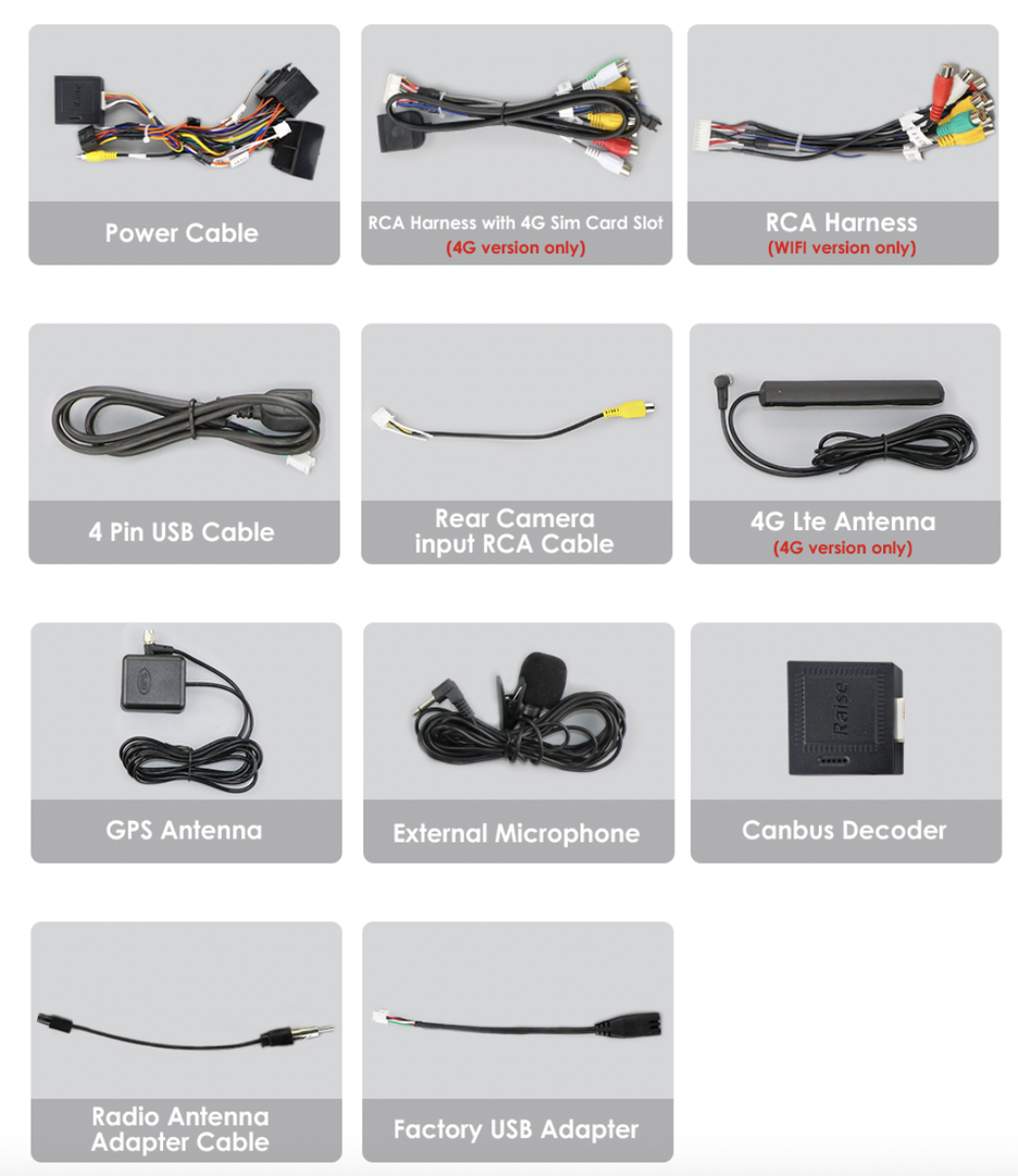 - RCA kabeláž včetně slotu pro SIM kartu (Slot pro SIM pouze u verzí S),