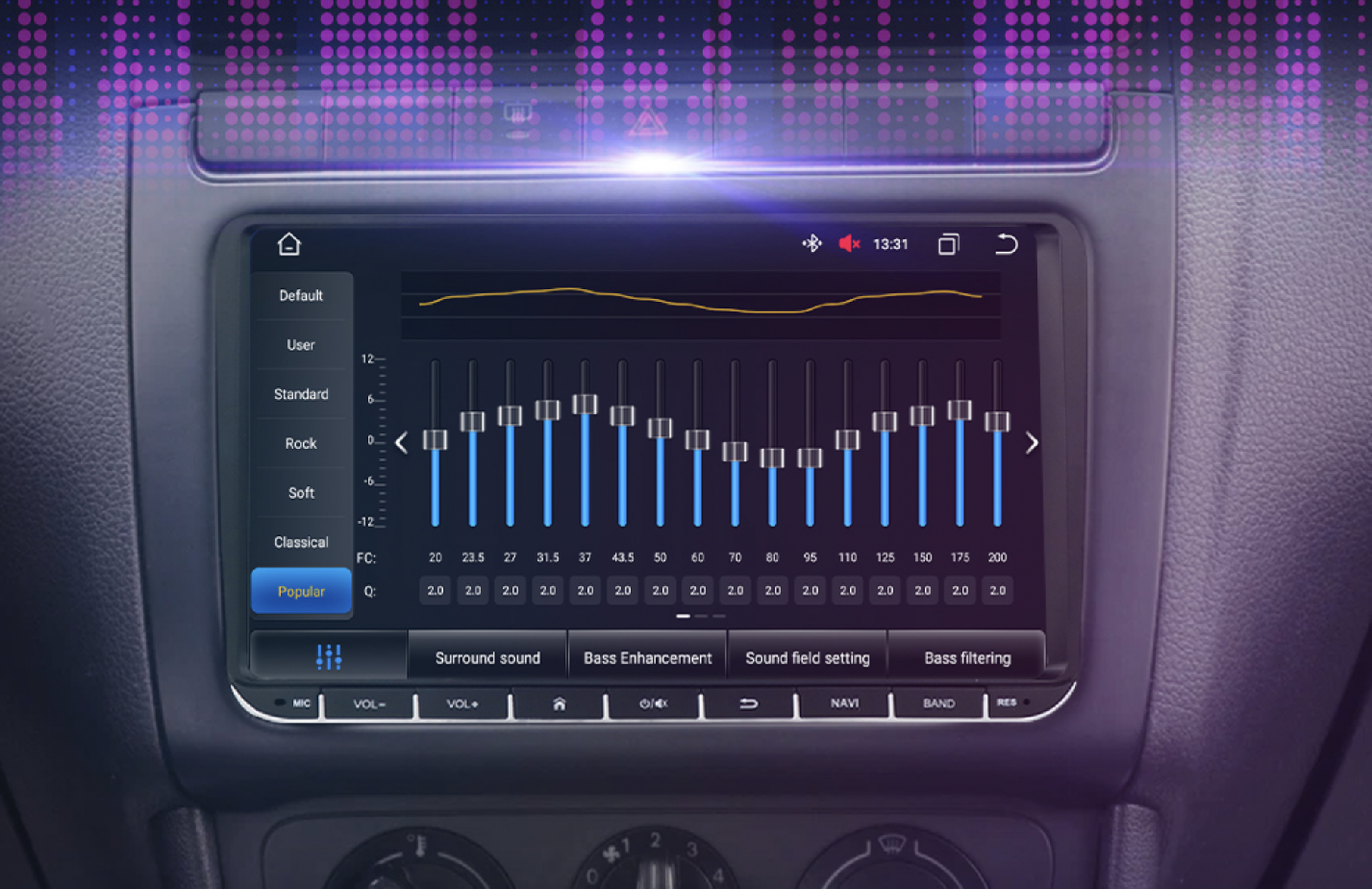 - Podpora prémiových reproduktorů SOUND SYSTEM (Škoda) a DynAudio (Volkswagen),