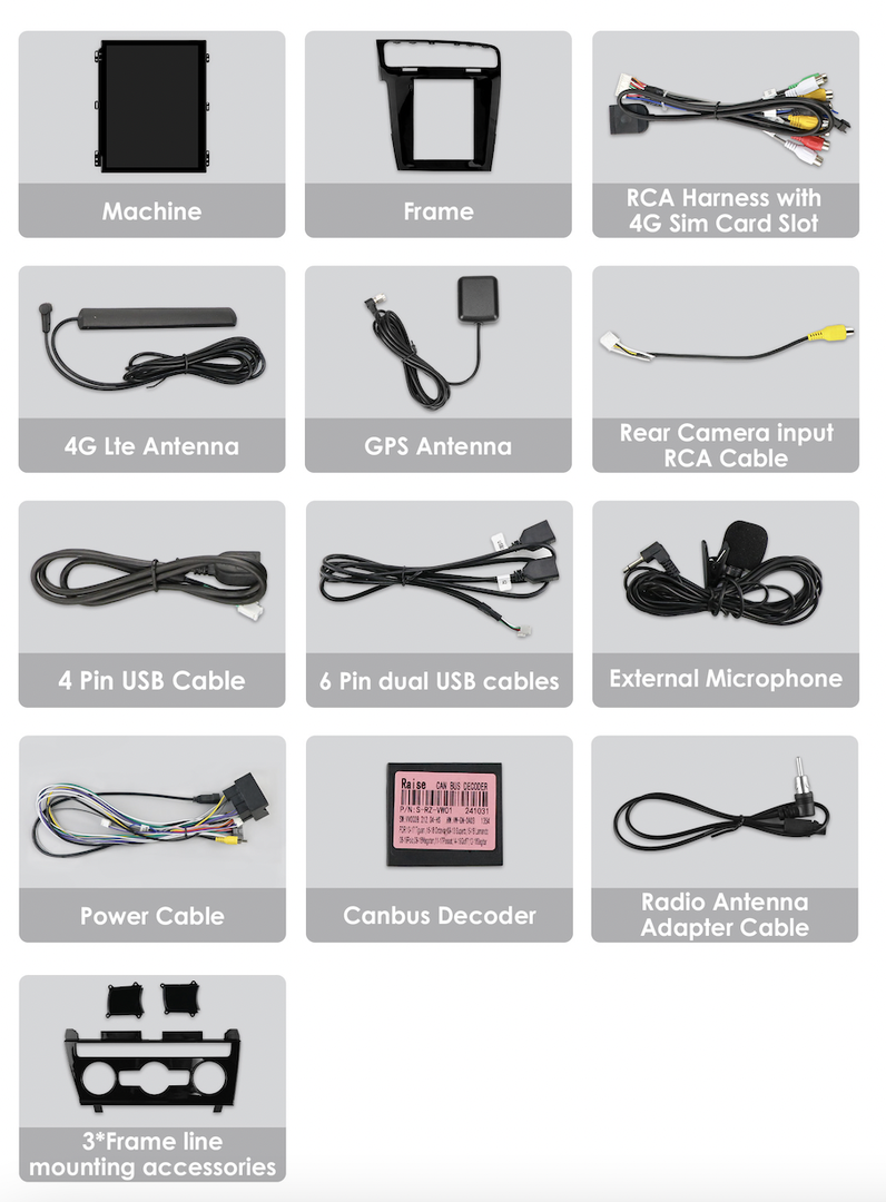 - RCA kabeláž včetně slotu pro SIM kartu,