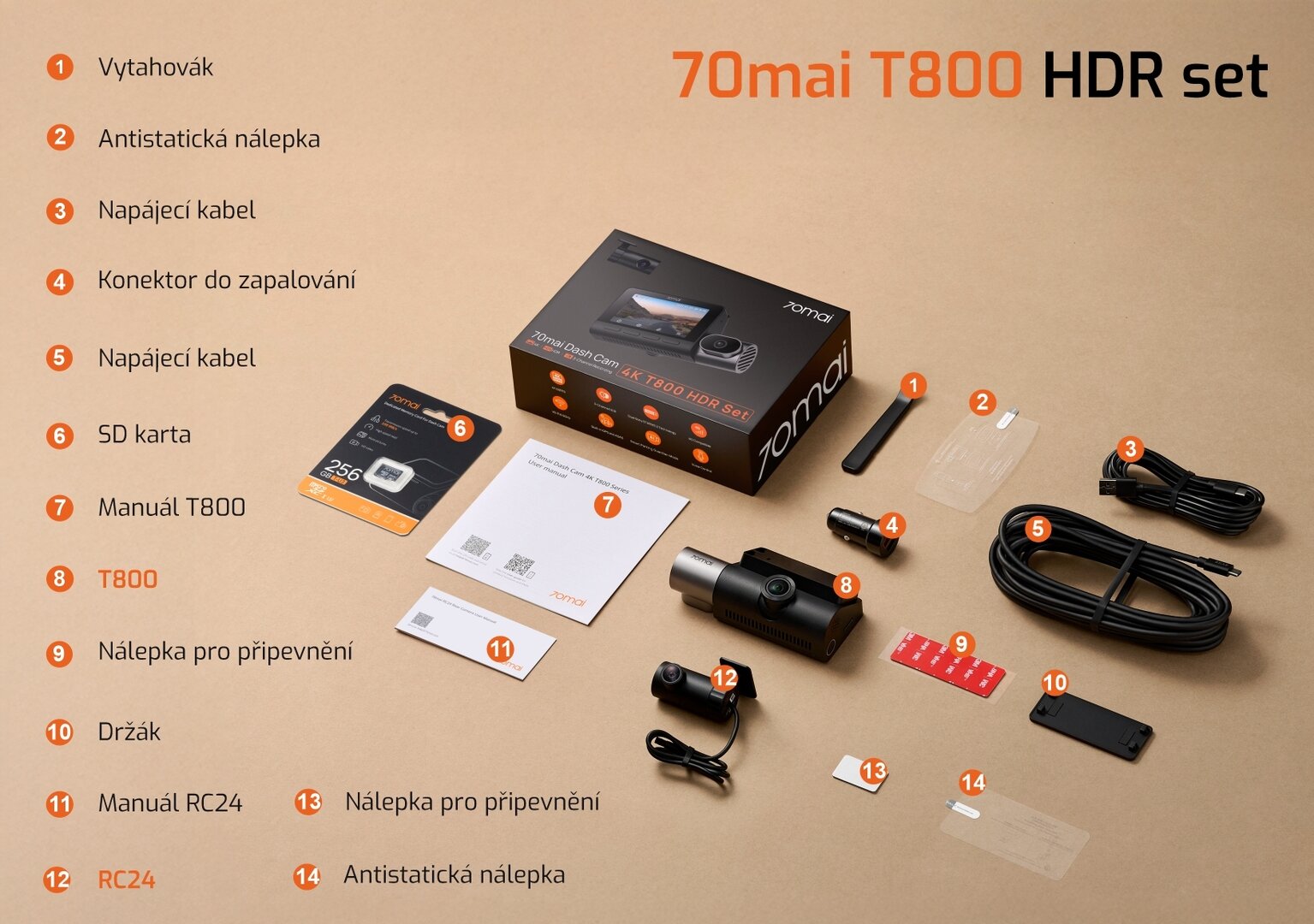 Kamera do auta 70mai Dash Cam 4K T800 Set Varianta: HDR set 4051/ROM