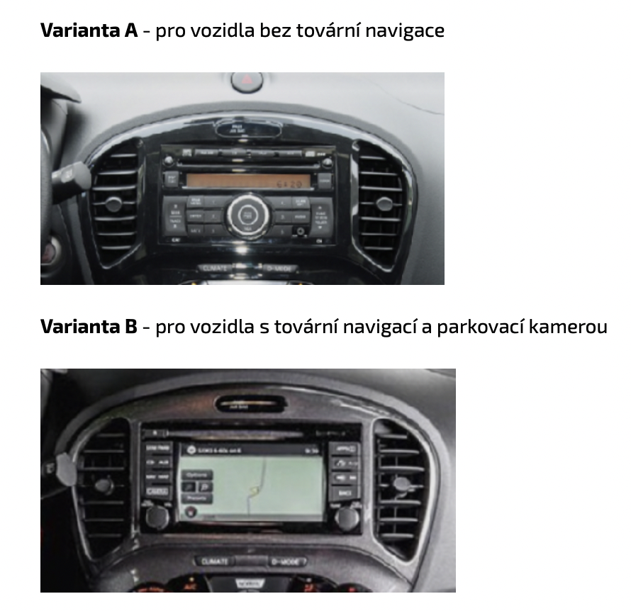 KXNSJK91A/B Rámeček pro 9" Android autorádio Nissan Juke B: Napájecí konektor typu B CHRKXNSJK91B