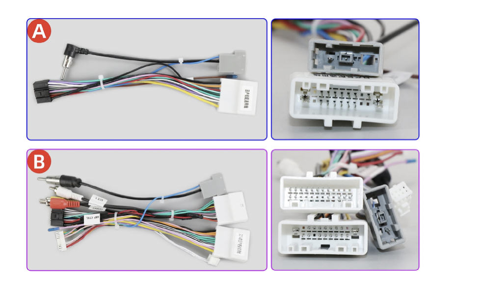Dvě varianty napájecích kabelů, podle druhu továrního autorádia.