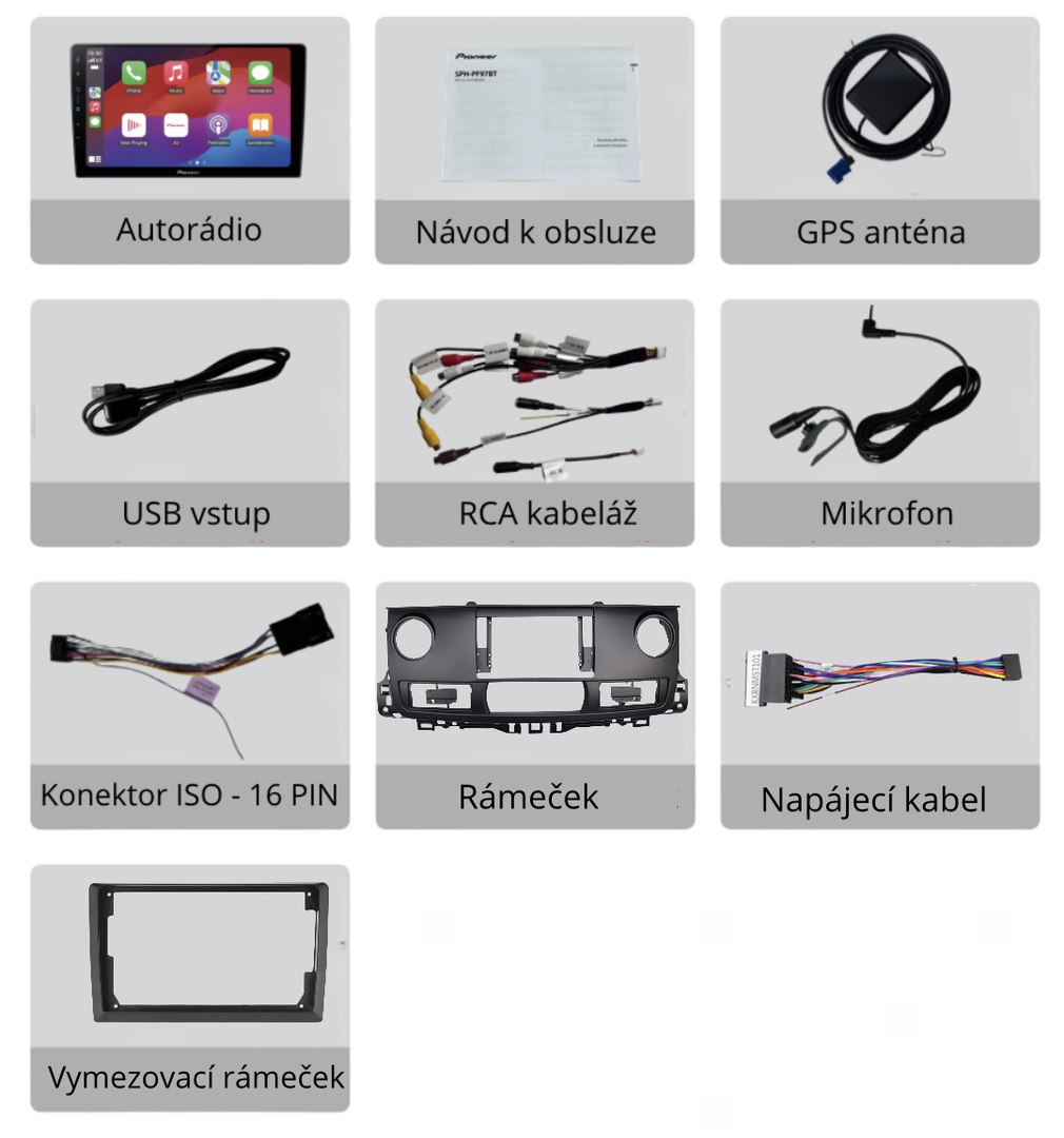 Autorádio Pioneer SPH-PF97BT s velkým 9" dotykovým displejem nabízí moderní výbavu včetně bezdrátového Apple CarPlay a Android Auto, Bluetooth handsfree, WebLink 3.0 a kvalitního DSP zvukového procesoru. Díky podpoře couvací kamery, jednoduchému ovládání a konstrukci PERFECT FIT, která umožňuje instalaci do různých typů vozidel, je ideální volbou pro každého, kdo chce komfort, bezpečnost a špičkový zvuk v jednom zařízení.